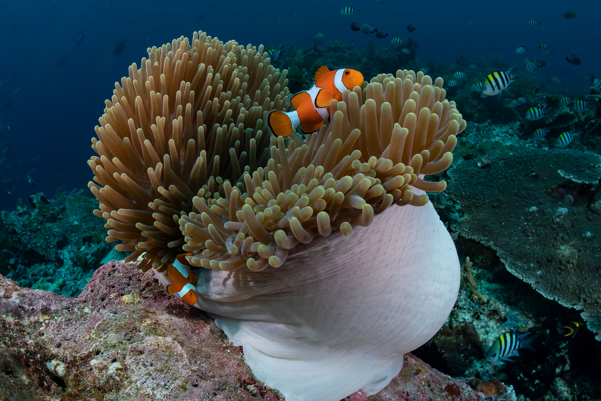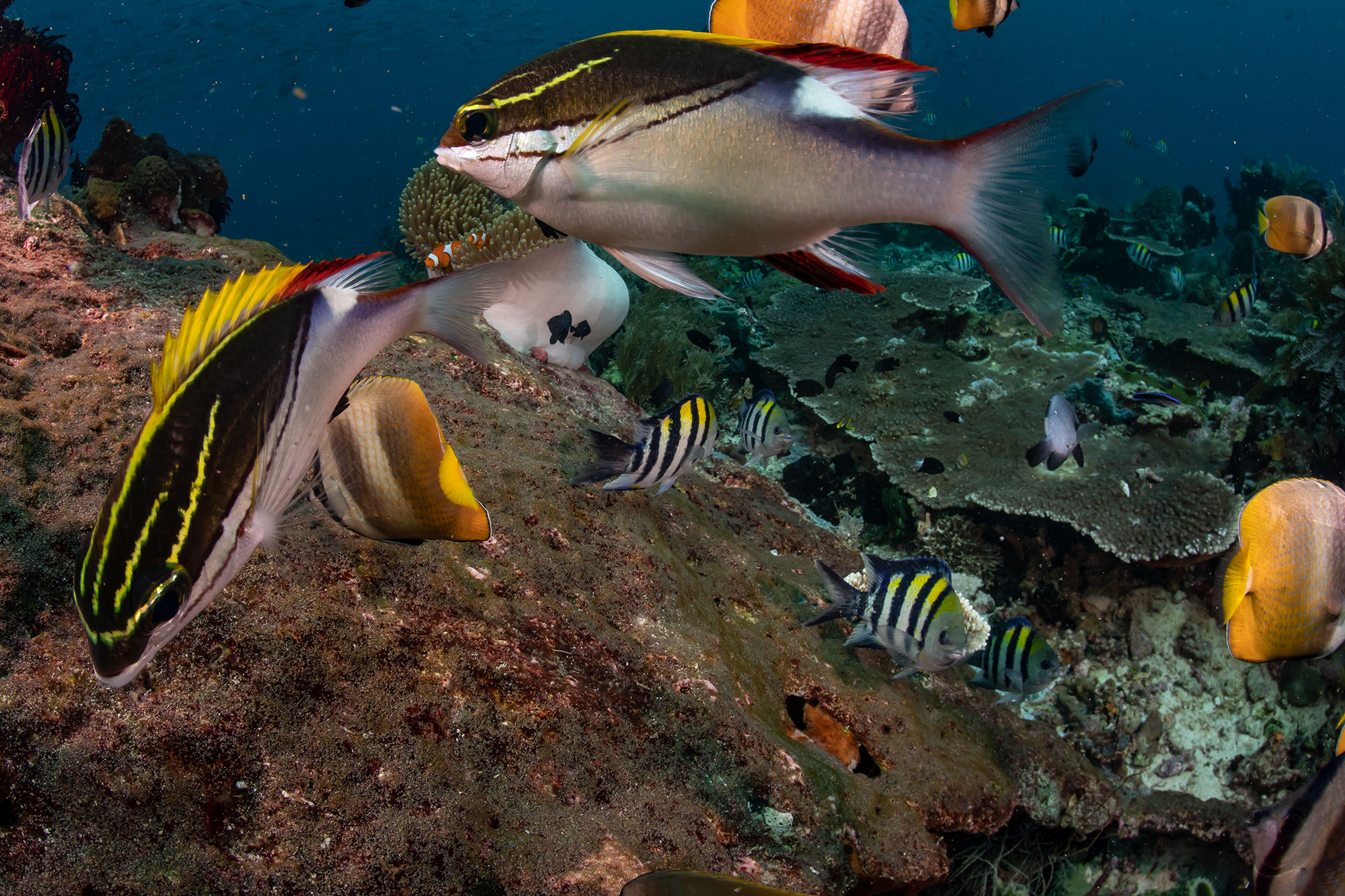 Das noch relativ unbekannte Seegebiet der „Triton Bay“ liegt in West Papua südlich von Raja Ampat und östlich von Ambon. 2008 wurde von den Behörden der Kaimana Verwaltung um die 6.000 km² Fläche unter Naturschutz gestellt. Zum Glück für uns Taucher! Denn mit der Artenvielfalt unter Wasser kann Triton Bay mit dem weiter nördlichen Raja Ampat mithalten. Man findet viele Tiere, wie den Wobbegong oder den Walking Shark teilweise sogar nur einen Steinwurf vom Strand entfernt im vorgelagerten Hausriff. Die Korallenriffe sind ähnlich wie die von Misool mit wunderschönen und farbenprächtigen Weichkorallen übersät und im Verborgenen findet man zahlreiche Kleinstlebewesen, wie das „Pygmee Seahorse“, Anglerfische und diverse Nachtschnecken.