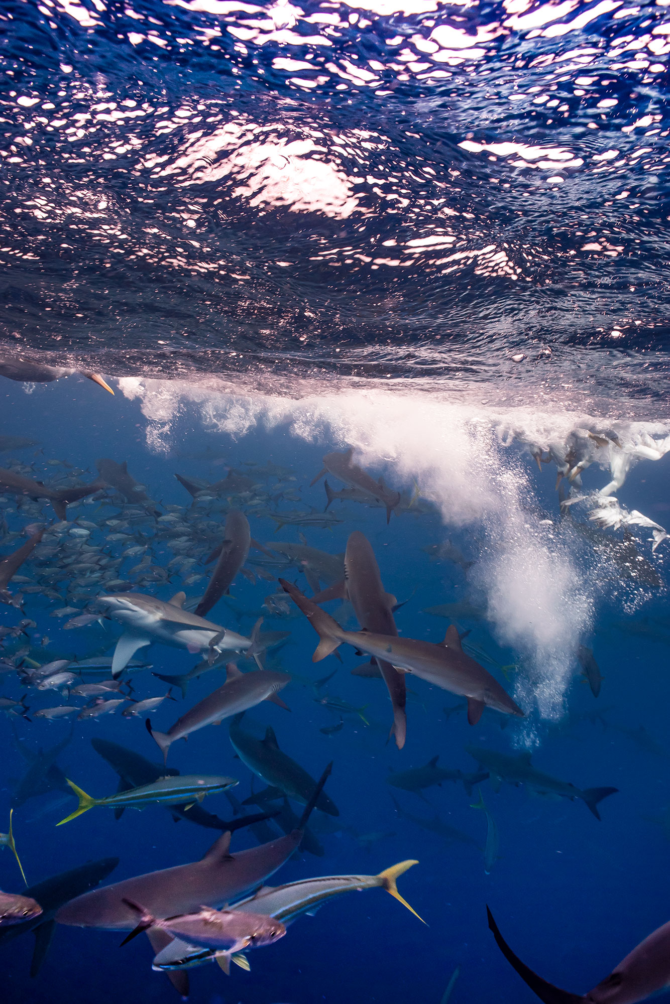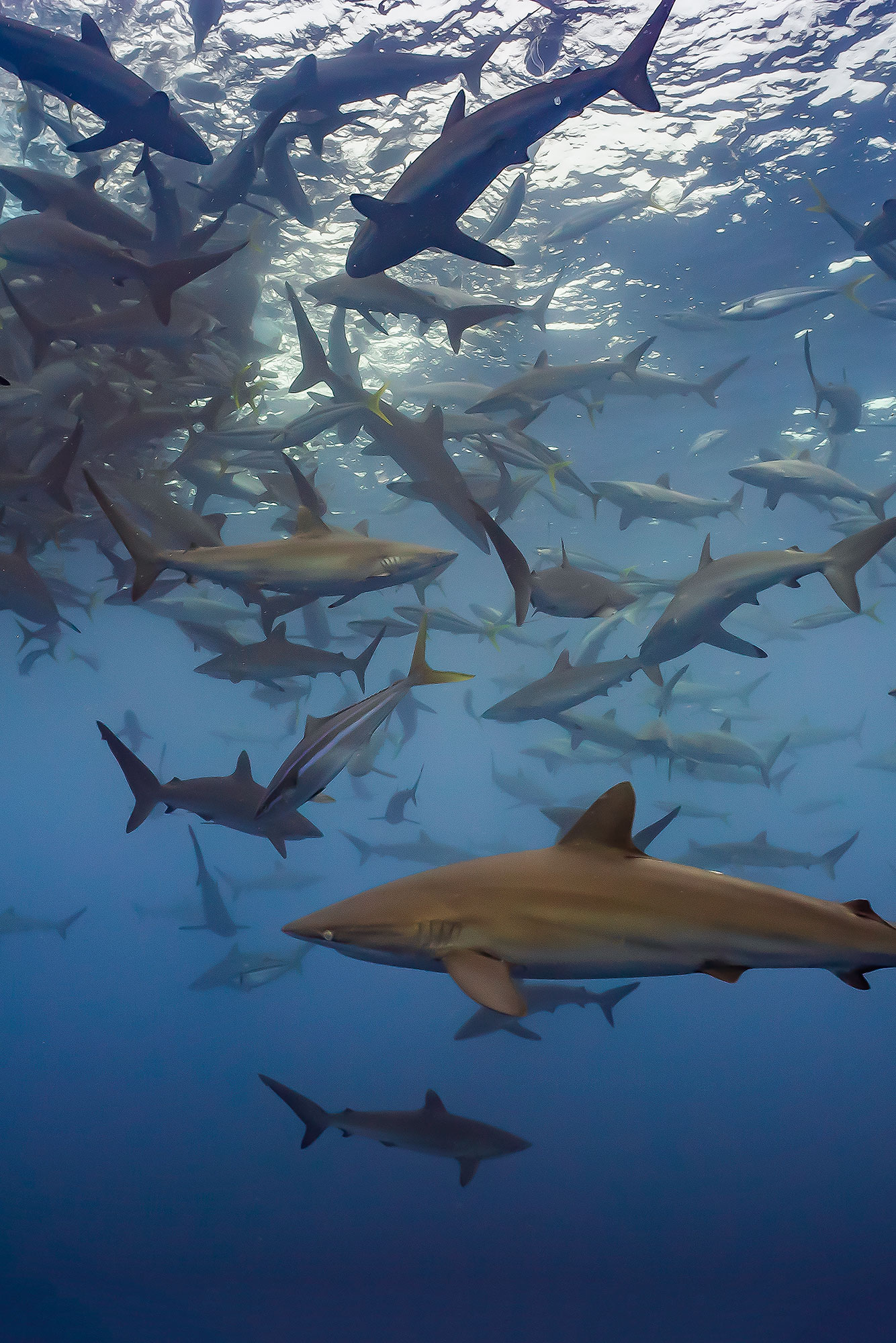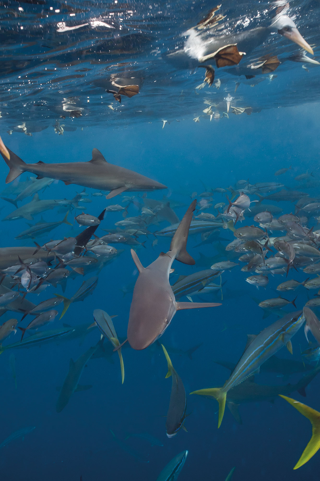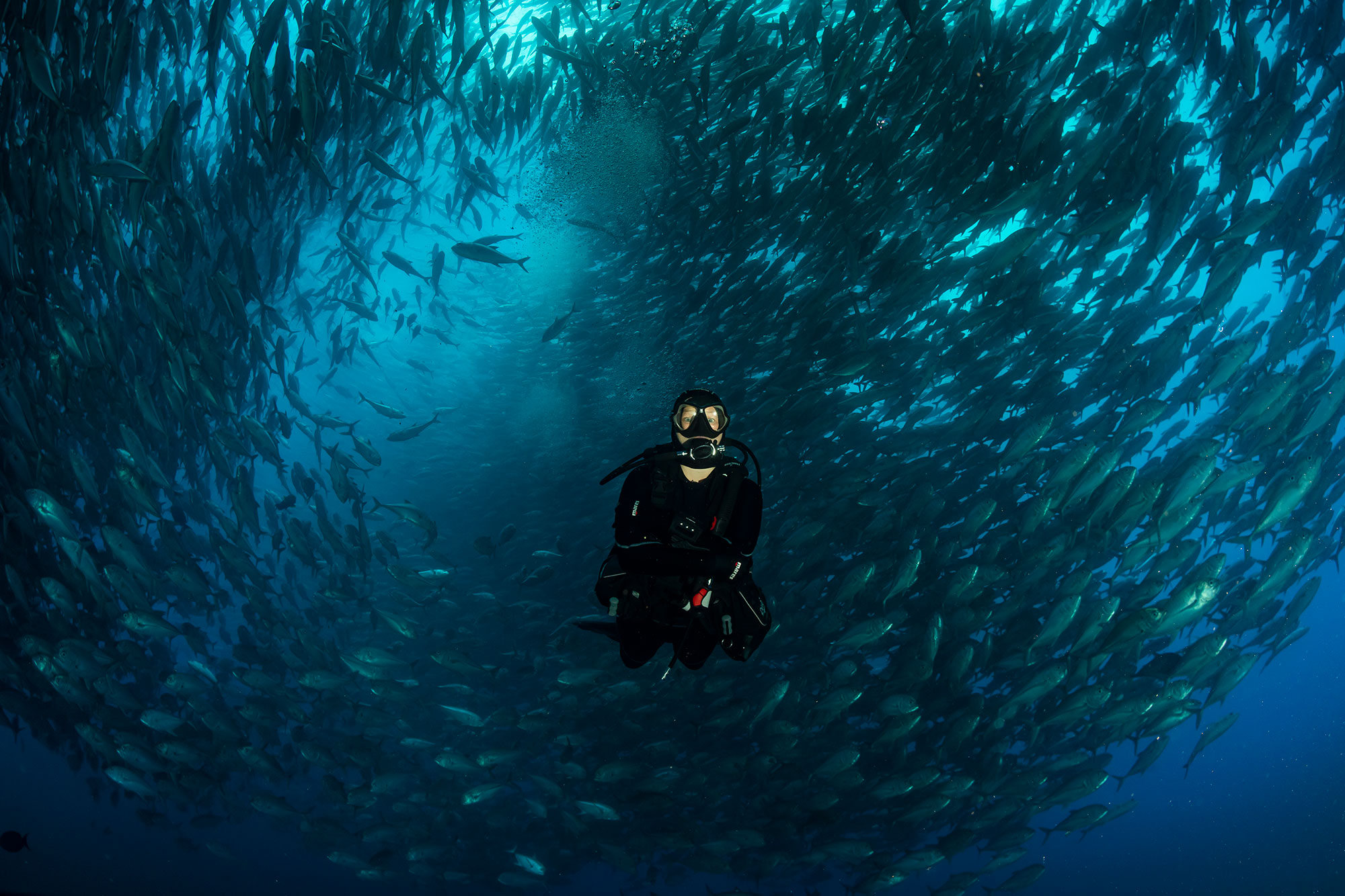 Baitballs, die Königsklasse. Auftreten kann dieses Phänomen und Highlight in jedem Taucherleben theoretisch überall rund um die Inseln und zu jeder Zeit. Glückstreffer kann man aber am besten landen, wenn sich rund um Treibgut, wie Baumstämmen oder alten Fischernetzen, eine große Anzahl an Schwarmfisch ansammelt und Schutz sucht. Erkennen kann man dies an den Hunderten von Seevögeln, die sich ins Wasser stürzen und aus dem Wasser schnellenden Thunfischen, die sich mit voller Geschwindigkeit in die Fischmasse stürzen. Kommt man rechtzeitig an den Ort des Geschehens zeigt sich unter Wasser ein unglaubliches Bild. Meter große Thunfische und hunderte Seidenhaie jagen hektisch nach den beliebten Mahlzeiten und die Fischschwärme versuchen mit gekonnten Manövern die Jäger zu täuschen.
