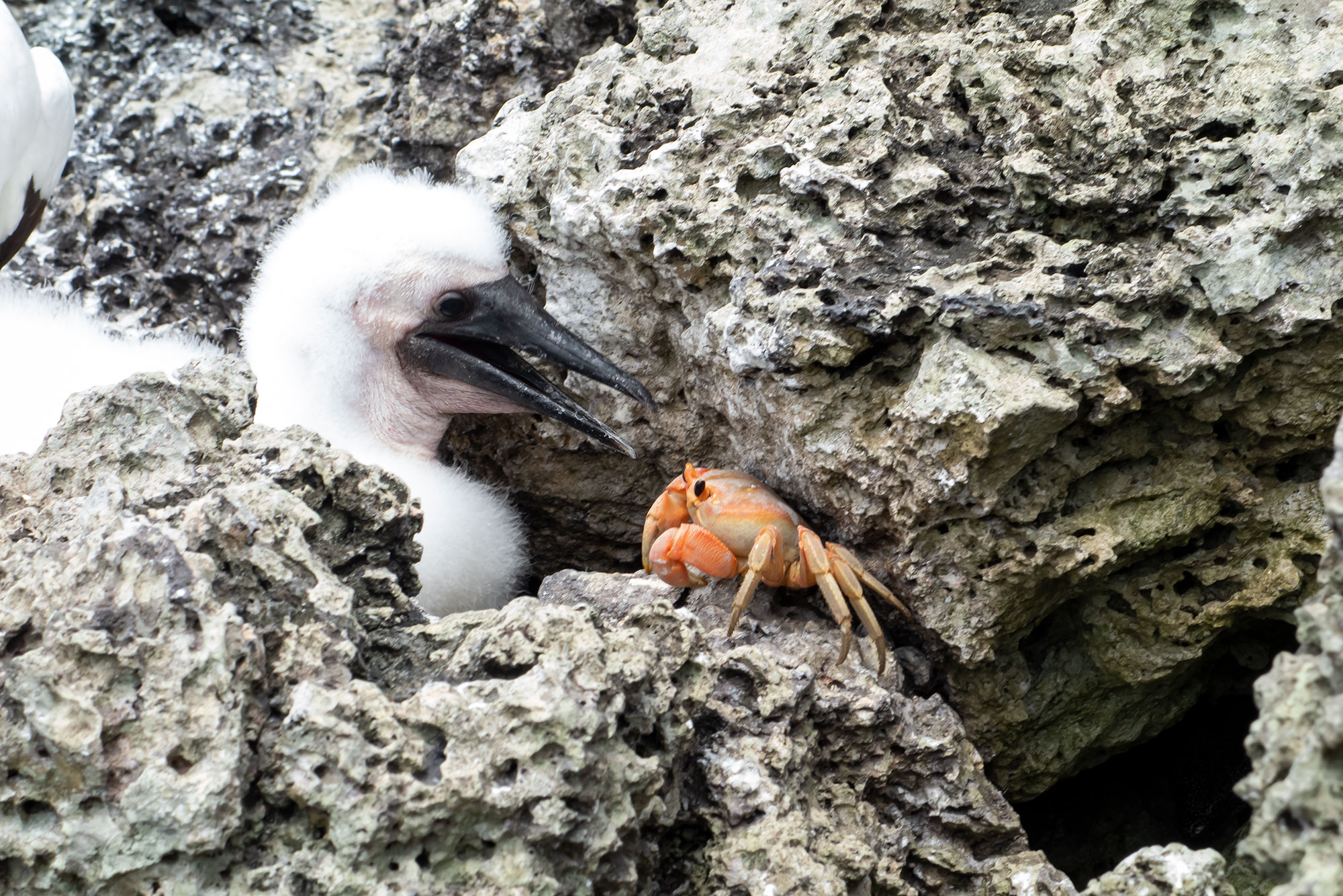 Malpelo ist zugleich Heimat von Abertausenden von Seevögeln, wie Tölpeln, Fregattvögeln und Seeschwalben. Nicht zu vergessen sind zahlreiche Krabbenarten, einige Echsen und kleinere Warane, die den Eiern der Seevögel nachstellen. Vorsicht jedoch denjenigen, die die Insel erklimmen möchten, denn Malpelo ist steil und schroff und der einzige Weg auf die Insel zu kommen ist mit Hilfe einer Strickleiter. Hat man diese Hürde überwunden, geht es im alpinen Bergsteigermodus hinauf in Richtung Militärstation. Ca. 160 Höhenmeter sind dabei zu überwinden. Um den schroffen Felsen zu erklimmen braucht es stets Genehmigung des Kommandanten, die leider sehr selten erteilt wird.