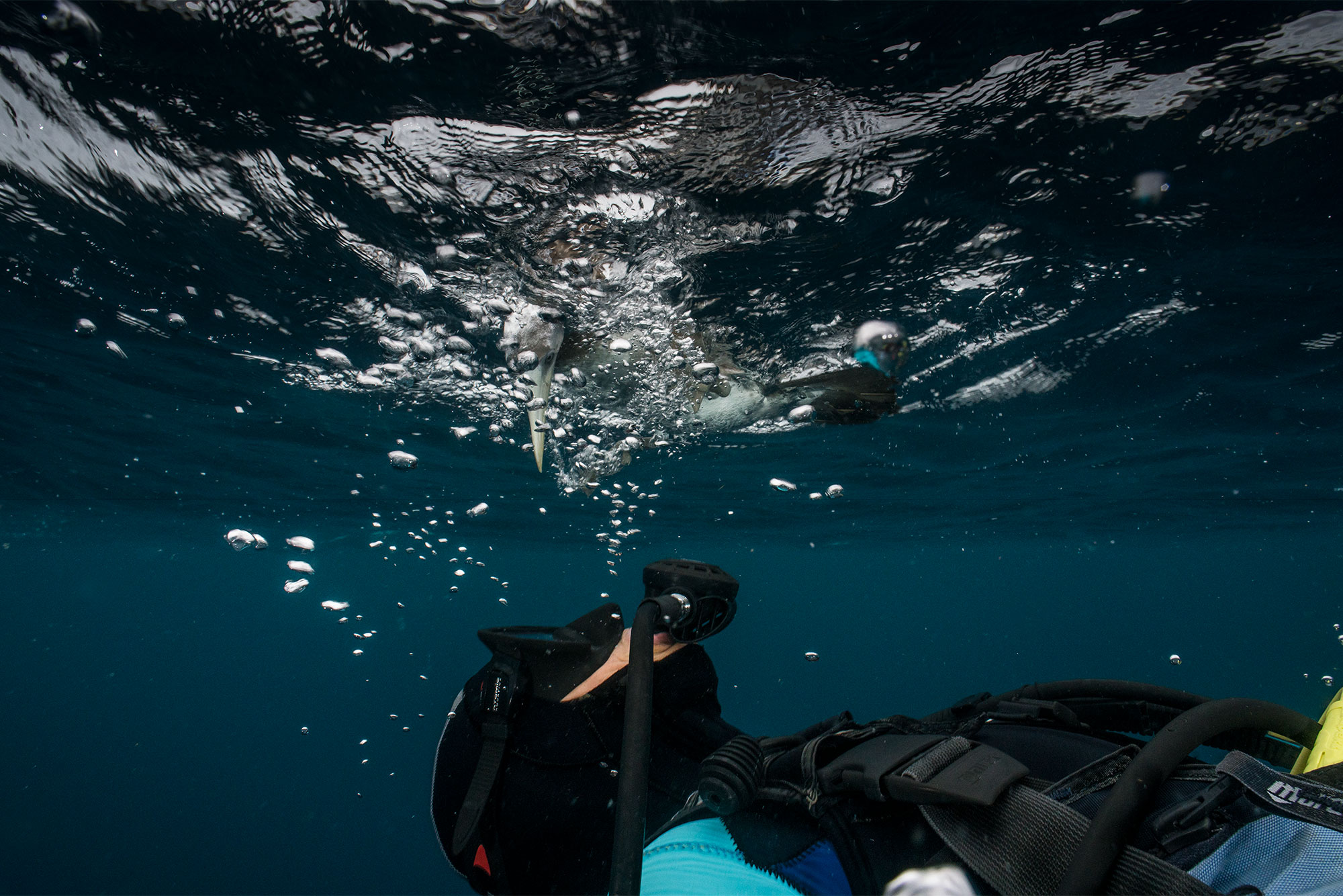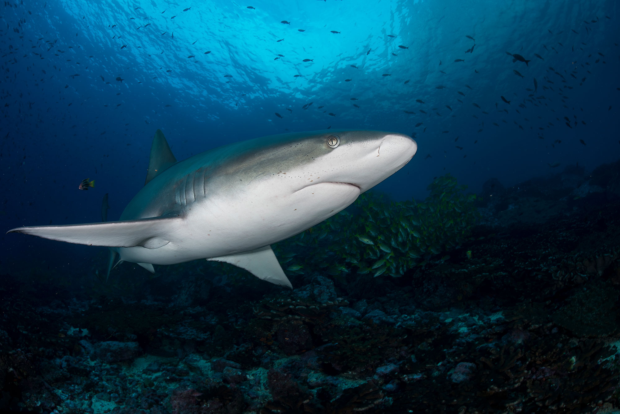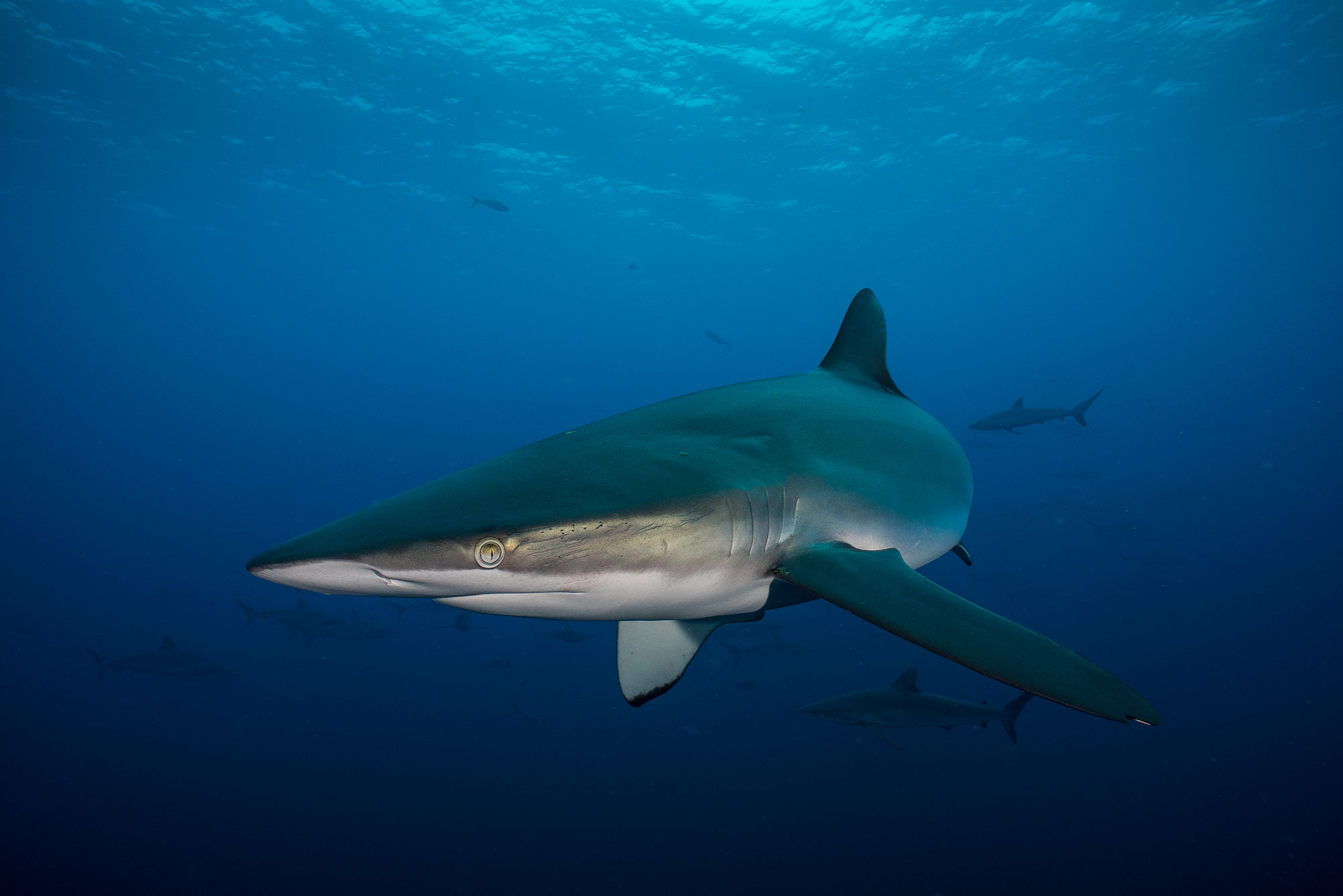 Galapagos-Haie sind die dritte vorherrschende Hai Art und sind an fast allen Riffen und Felsen vor Malpelo zu finden. Die bis zu 3 Meter langen Tiere sind imposante Räuber und haben ein dementsprechend selbstbewusstes Auftreten. An einem Tauchplatz zwischen La Gringa und David konnten wir schon an einem tief liegenden Riff bis zu 20 Tiere zählen. Ein unvergessliches Erlebnis, wenn man da unten sitzt, den Galapagos-Haien zuschaut und einem gerade hundert Hammerhaie über den Kopf schwirren.