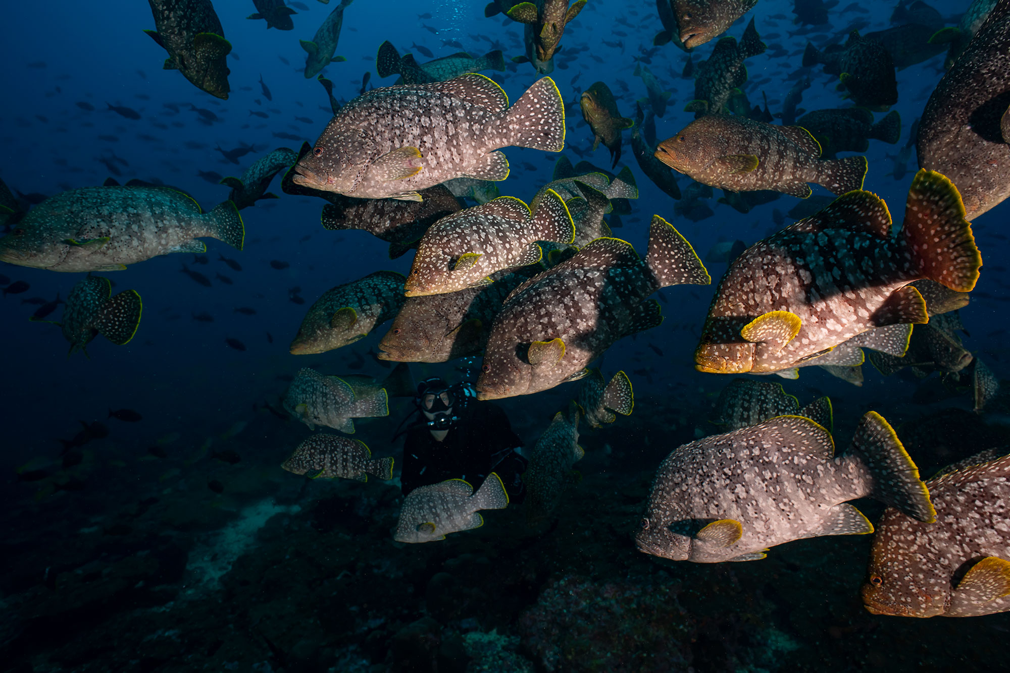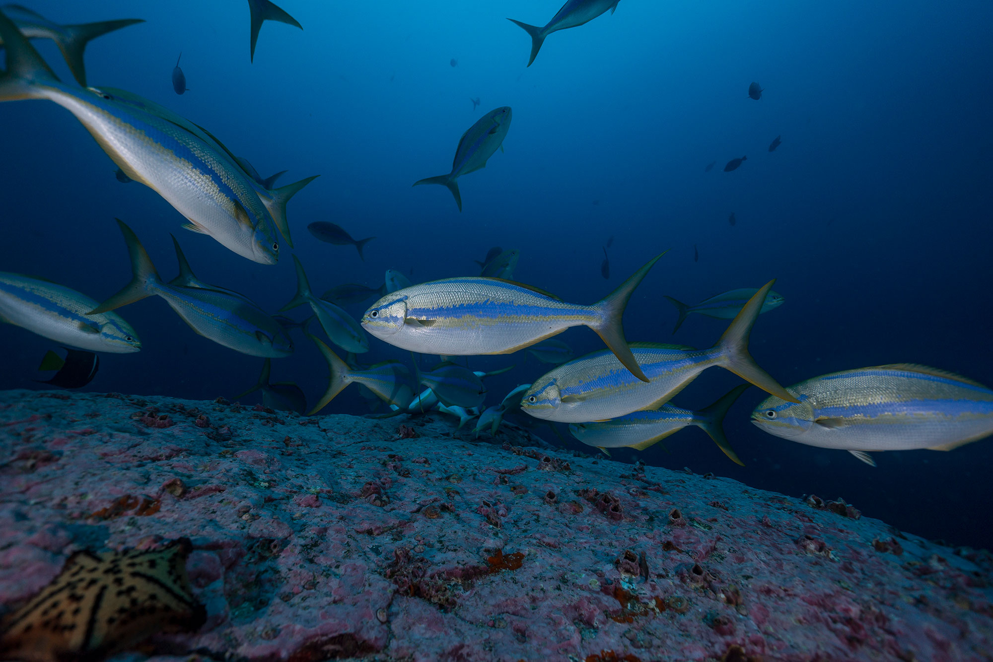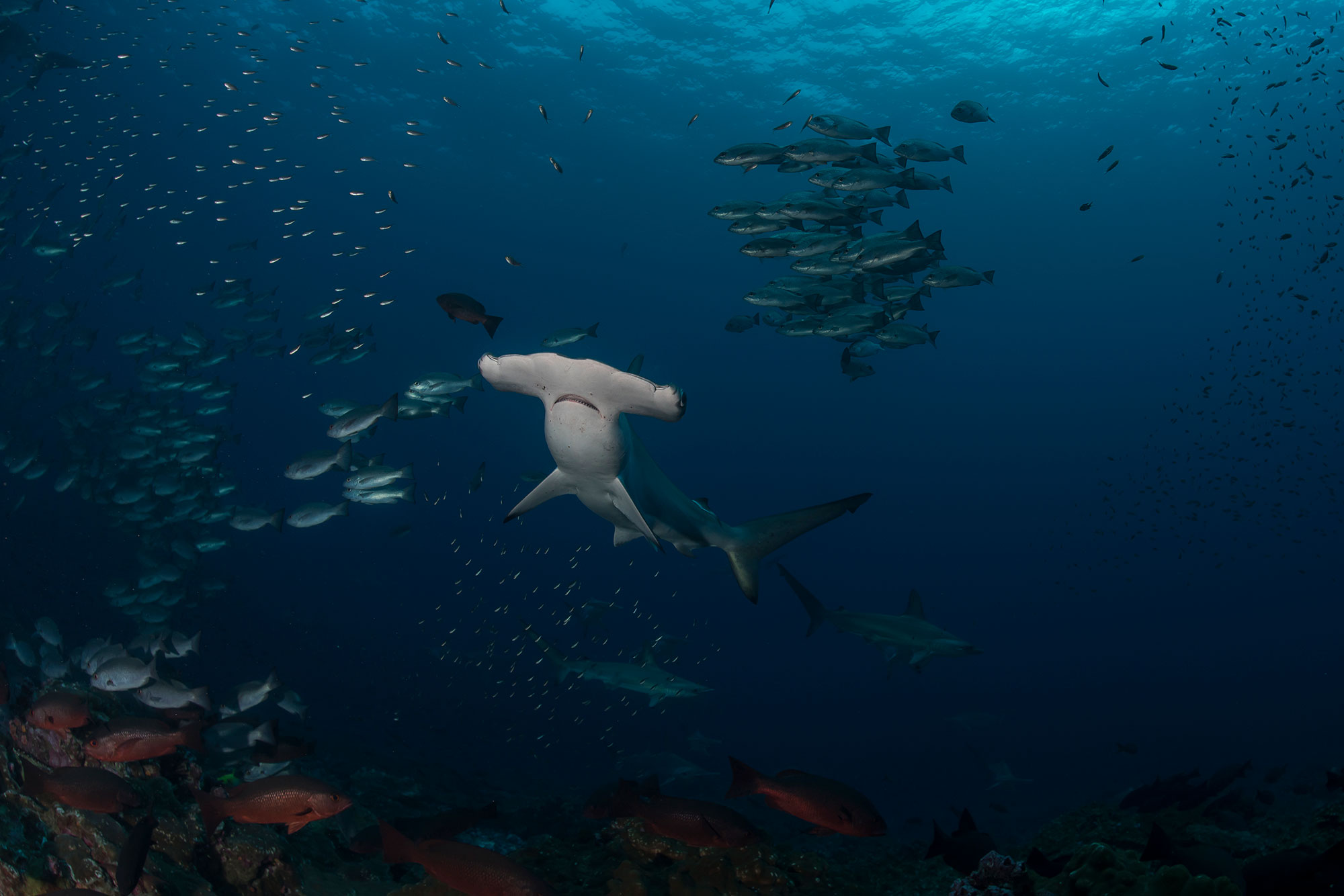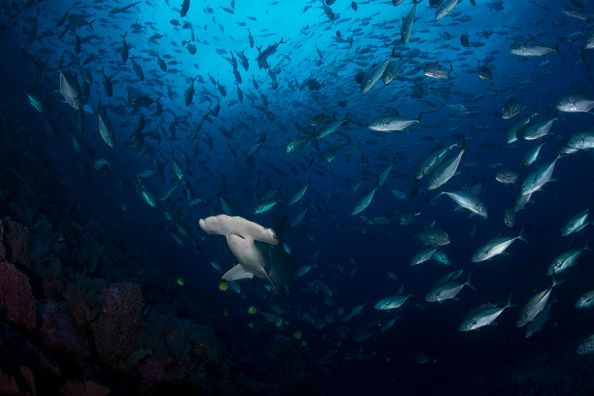 Fischschwärme sind ein weiterer Grund, die für Malpelo sprechen. An Tauchplätzen, wie Los Tres Mosqueteros finden sich regelmässig Makrelenschwärme mit tausenden von Tieren ein. Allzu oft kommen noch unzählige Red Snapper dazu und bilden eine riesige Wolke, die den Tag zur finsteren Nacht werden lassen, wenn man in die Gruppe eintaucht. Immer wieder öffnet sich die Fischmasse und macht Platz für einzelne Hammer- oder Galapagos-Haie. Fast alle der hier vorkommenden Fischarten treten in „Massen“ auf. Adlerrochen stehen auf der Tagesordnung von klein bis groß, von Einzelgängern bis hin zu kleineren Schulen.
