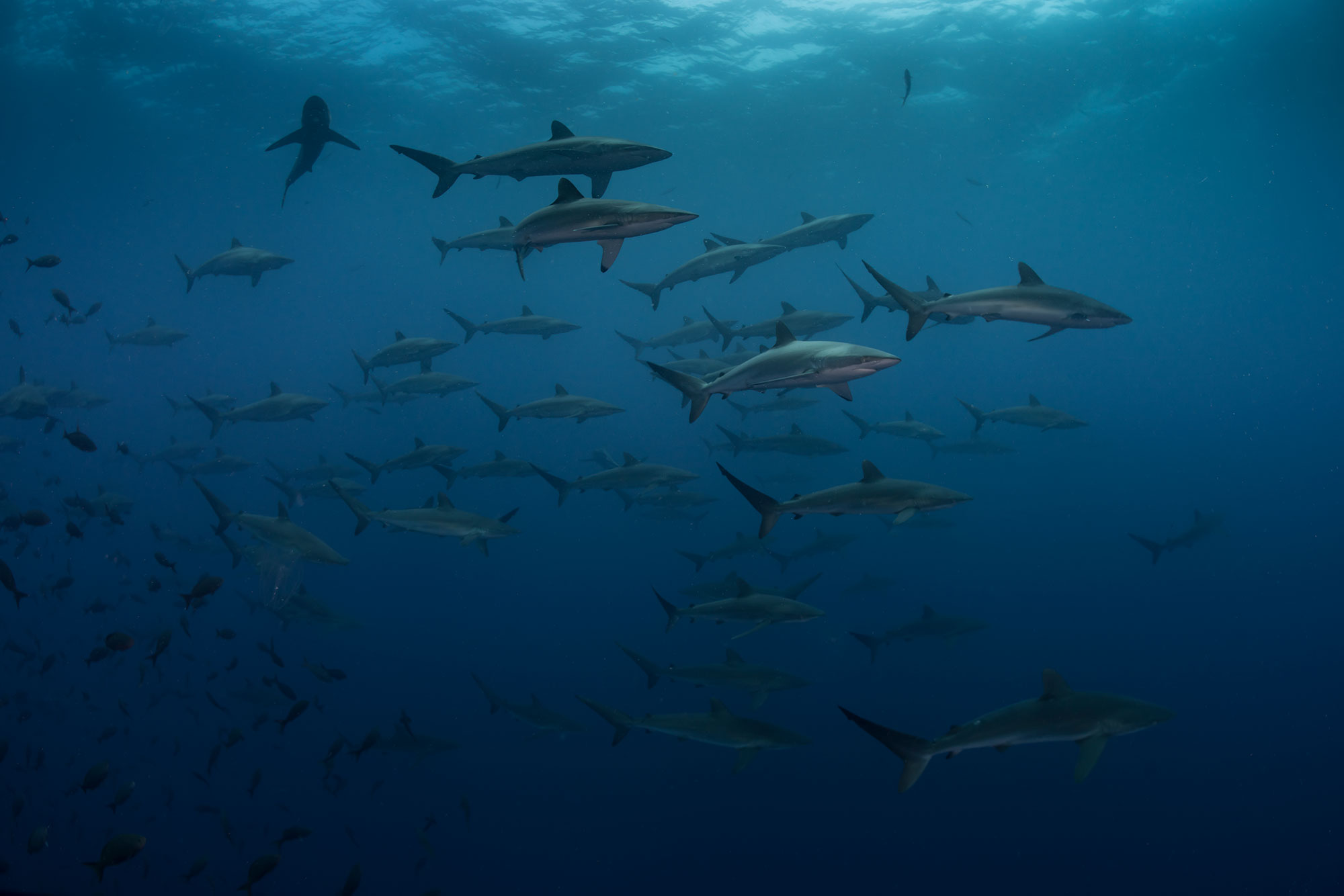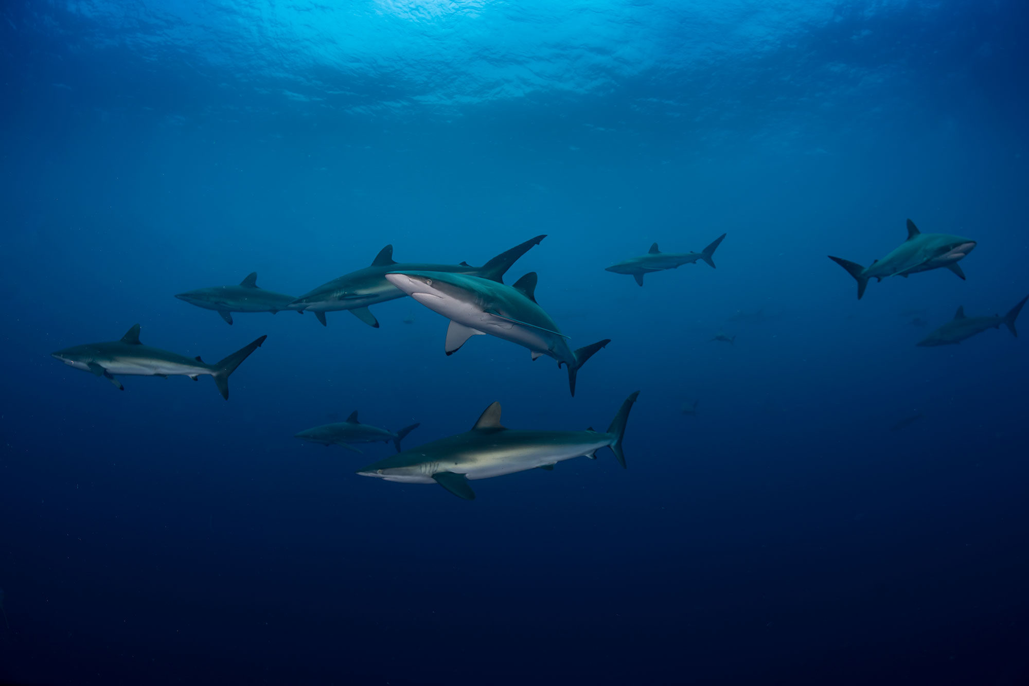 Seidenhaie sind eine weitere Attraktion. Bei fast jedem Auftauchen dauert es meist nur wenige Minuten und die ersten Tiere kommen an die Oberfläche, um neugierig die Taucher zu bestaunen, bevor sie wieder in größere Tiefen entschwinden. In La Gringa, La Nevera und Ferreteria kommt es des Öfteren zu Ansammlungen von bis zu 200 Tieren. Abgesehen von Baitballs sind derartige Seidenhai Formierungen hauptsächlich in den Monaten Mai bis September vor zu finden oder im Blue Planet Movie des BBC . Wollen Sie dies selbst erleben, stehen Ihre Chancen in Malpelo am besten.