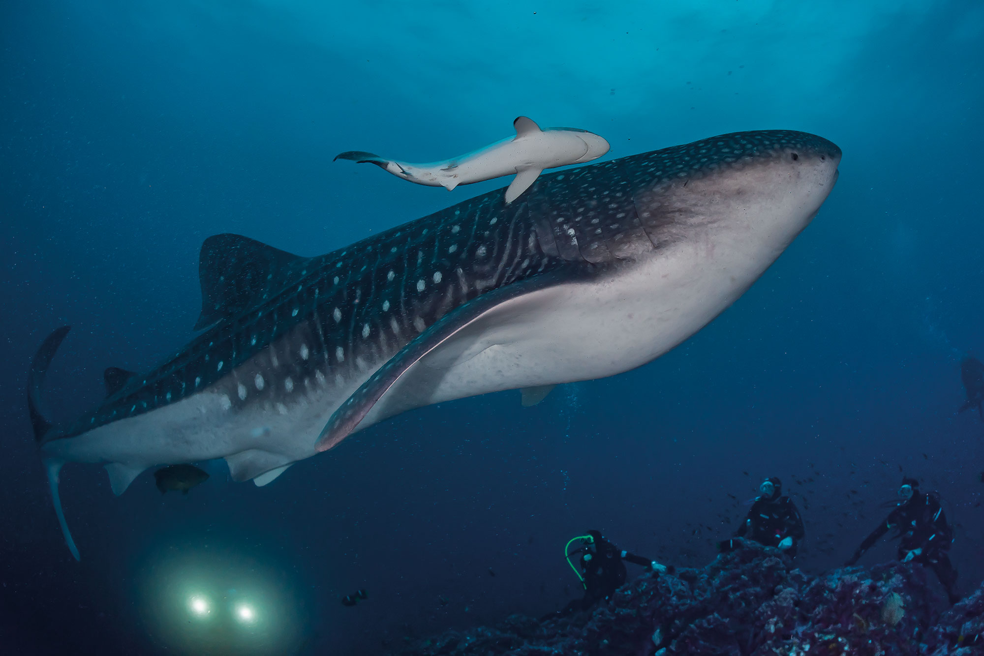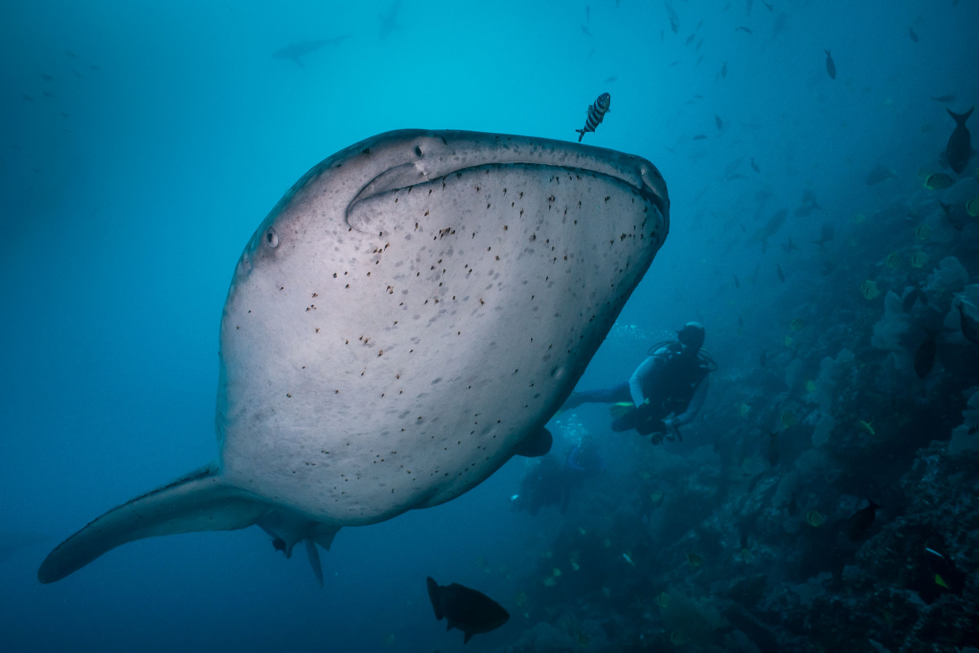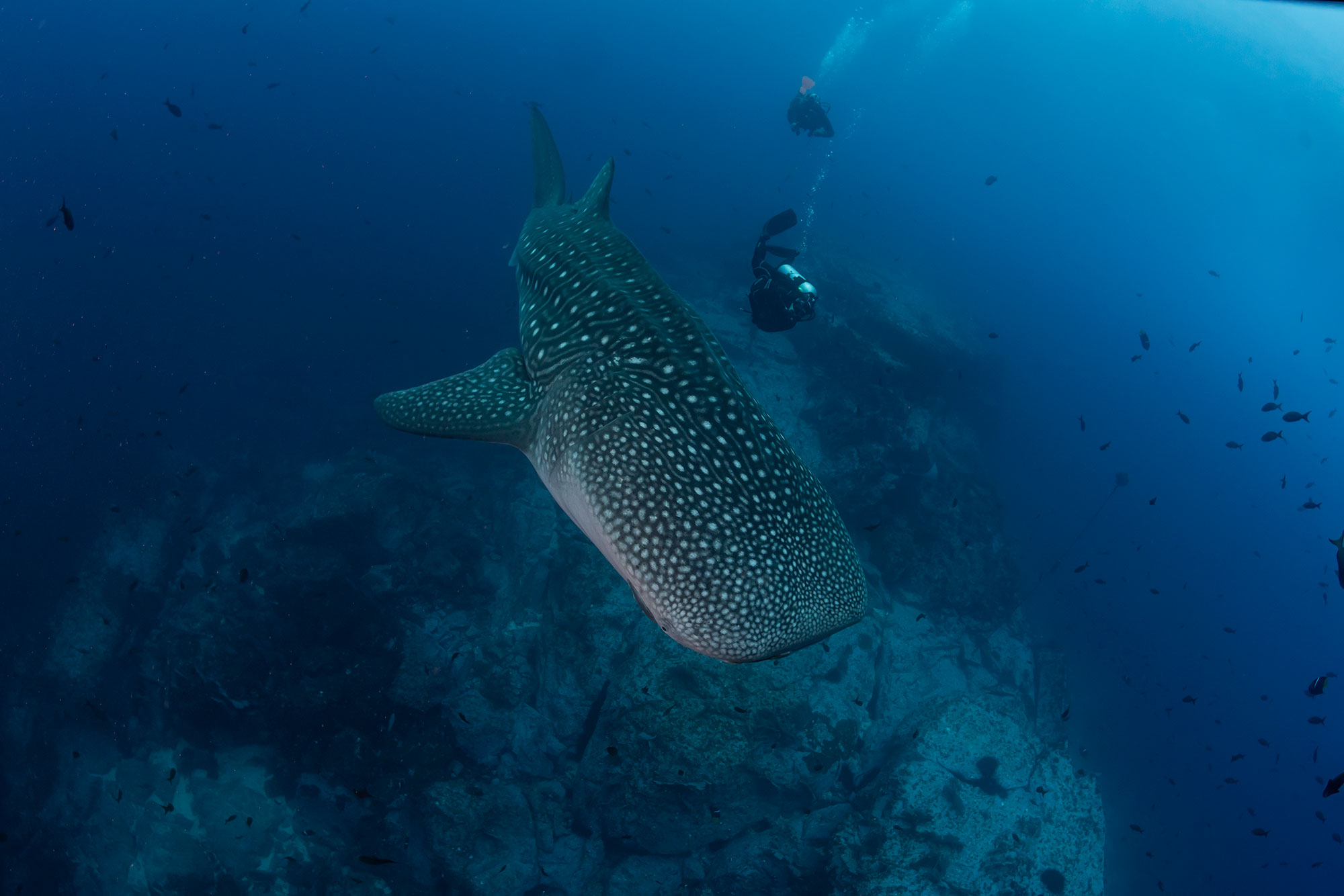 Mantas und Walhaie sind ebenso regelmäßige Besucher in diesen Gewässern. Vom kleinen Nachwuchs mit 4m Länge bis hin zur Big Mama Walhai mit stattlichen 12m Länge, sind Sie alle in Malpelo vertreten. Im Grunde sind Einzelsichtungen das ganze Jahr über möglich. Die beste Zeit jedoch für Walhaisichtungen ist Juni bis September.