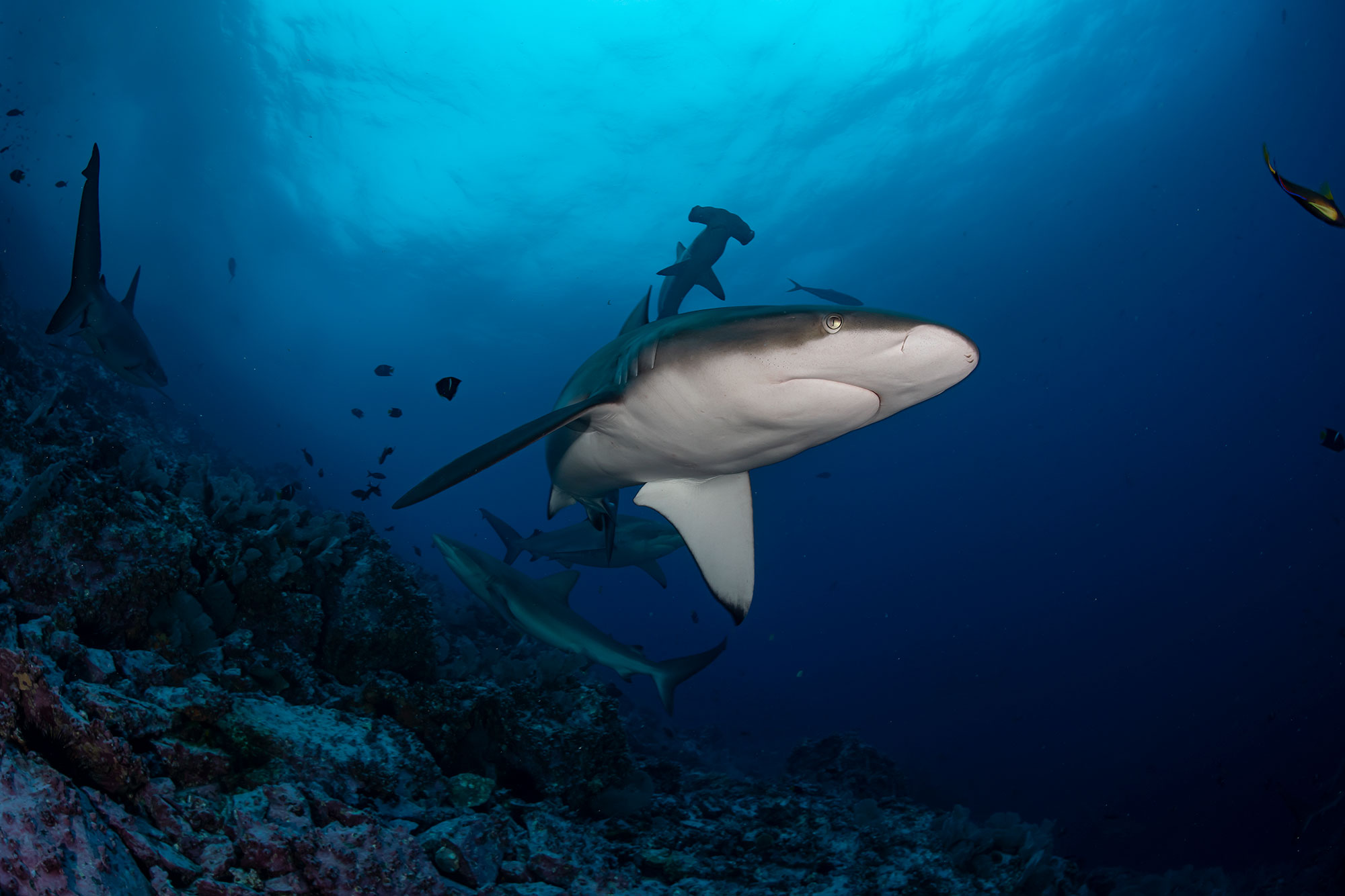 Neben Cocos Island, Gorgona Island und Galapagos gehört Malpelo in wissenschaftlichen Fachkreisen einem der bedeutendsten Hai Migrations Korridoren im Pazifik an.