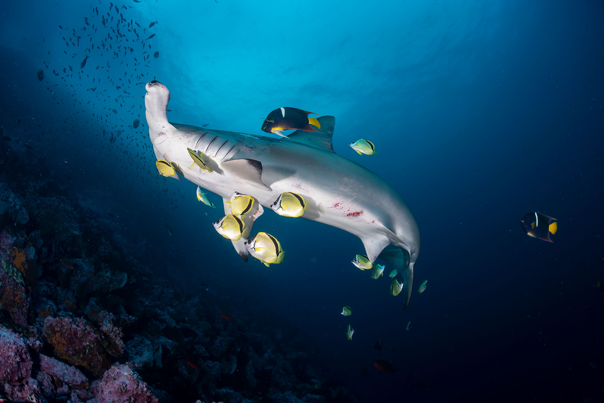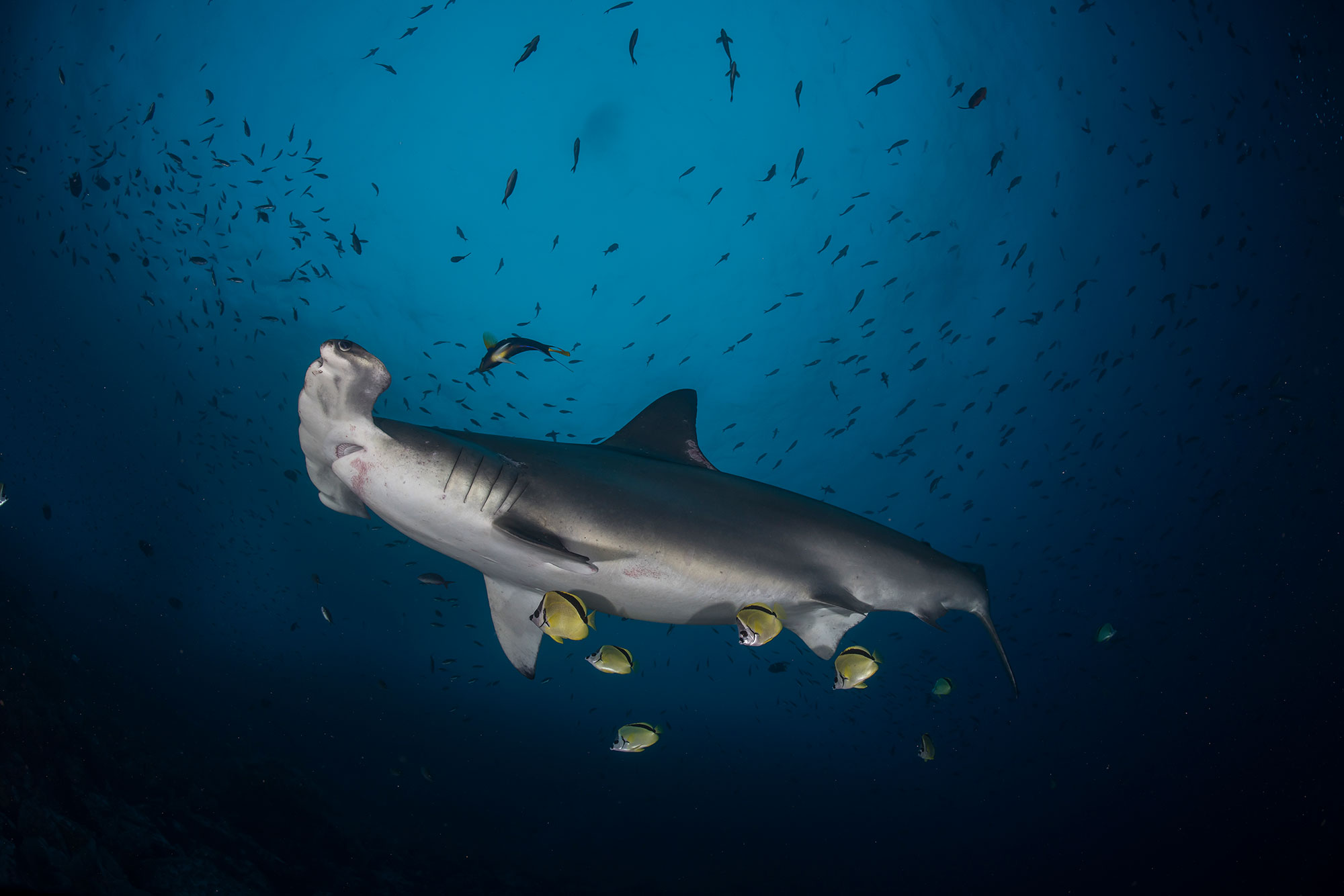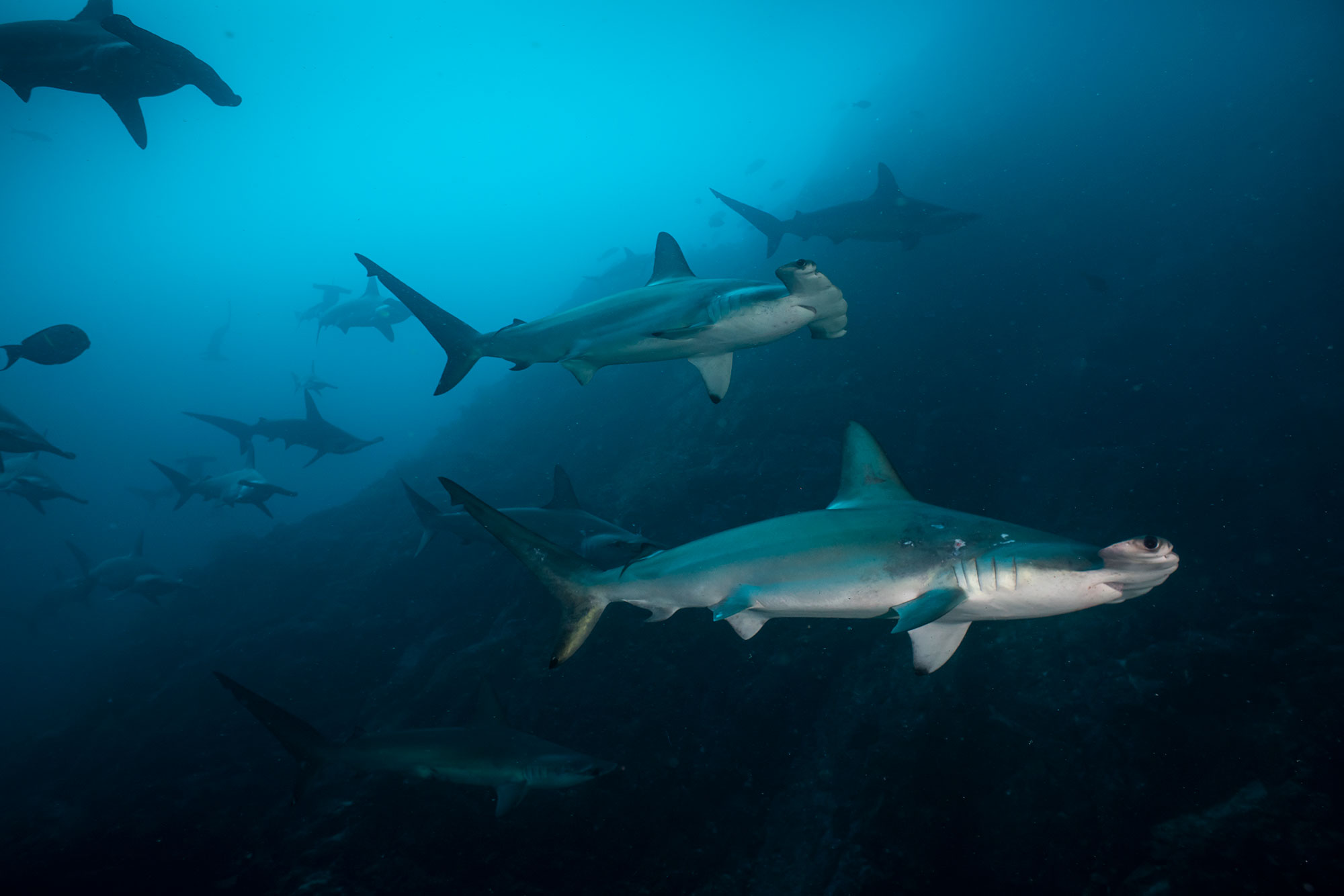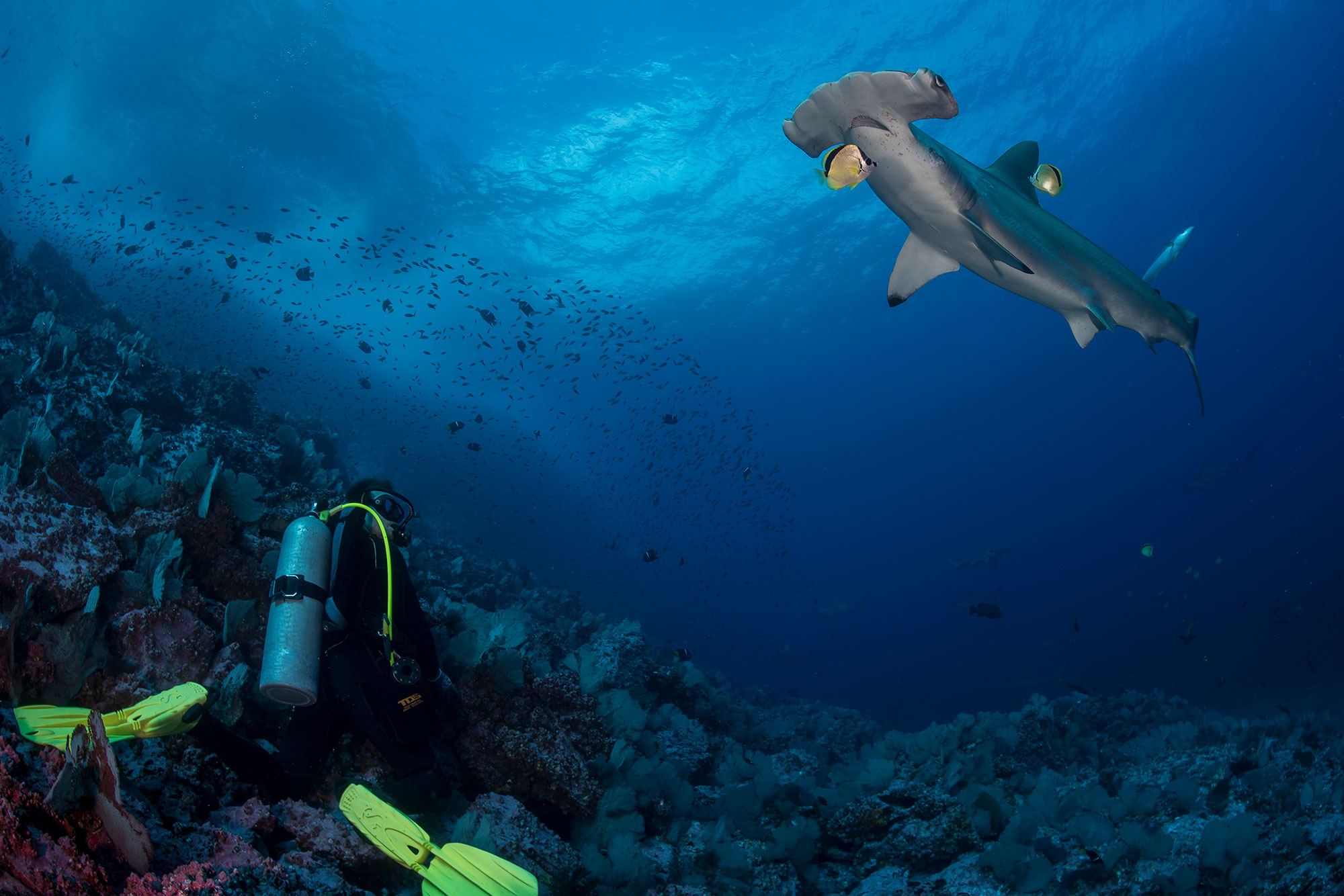 Hammerhaie, Galapagoshaie und riesige Fischschulen gehören zum ganz jährigen Repertoire Malpelo´s.