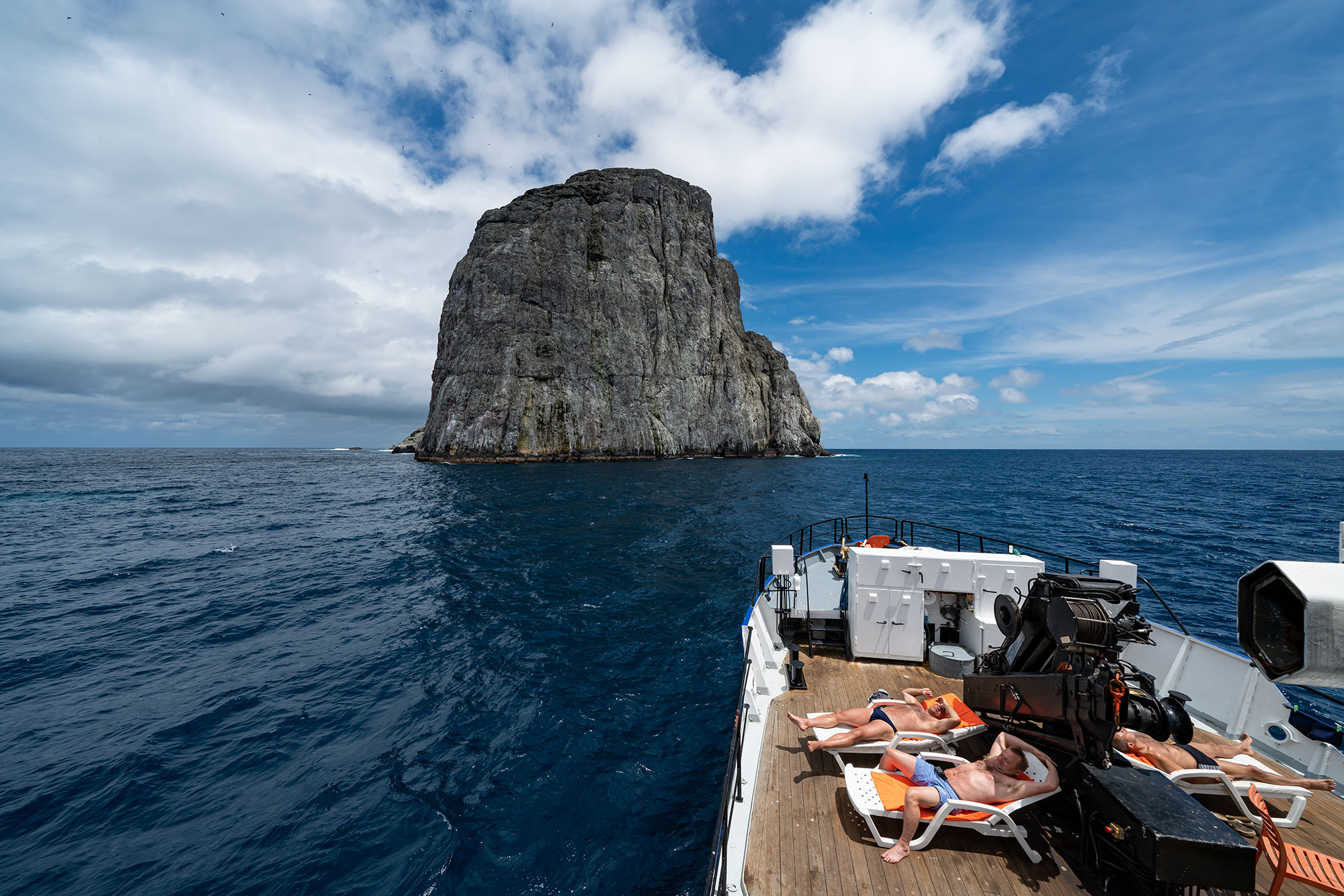 Malpelo liegt exponiert auf offener See – ca. 30 Stunden vom Festland Kolumbiens entfernt. Der steil aus den Tiefen des Pazifiks ragende vulkanische Felsen mit seinen vorgelagerten Satelliteninselchen wirkt wie ein Magnet auf alle Räuber des Ozeans.