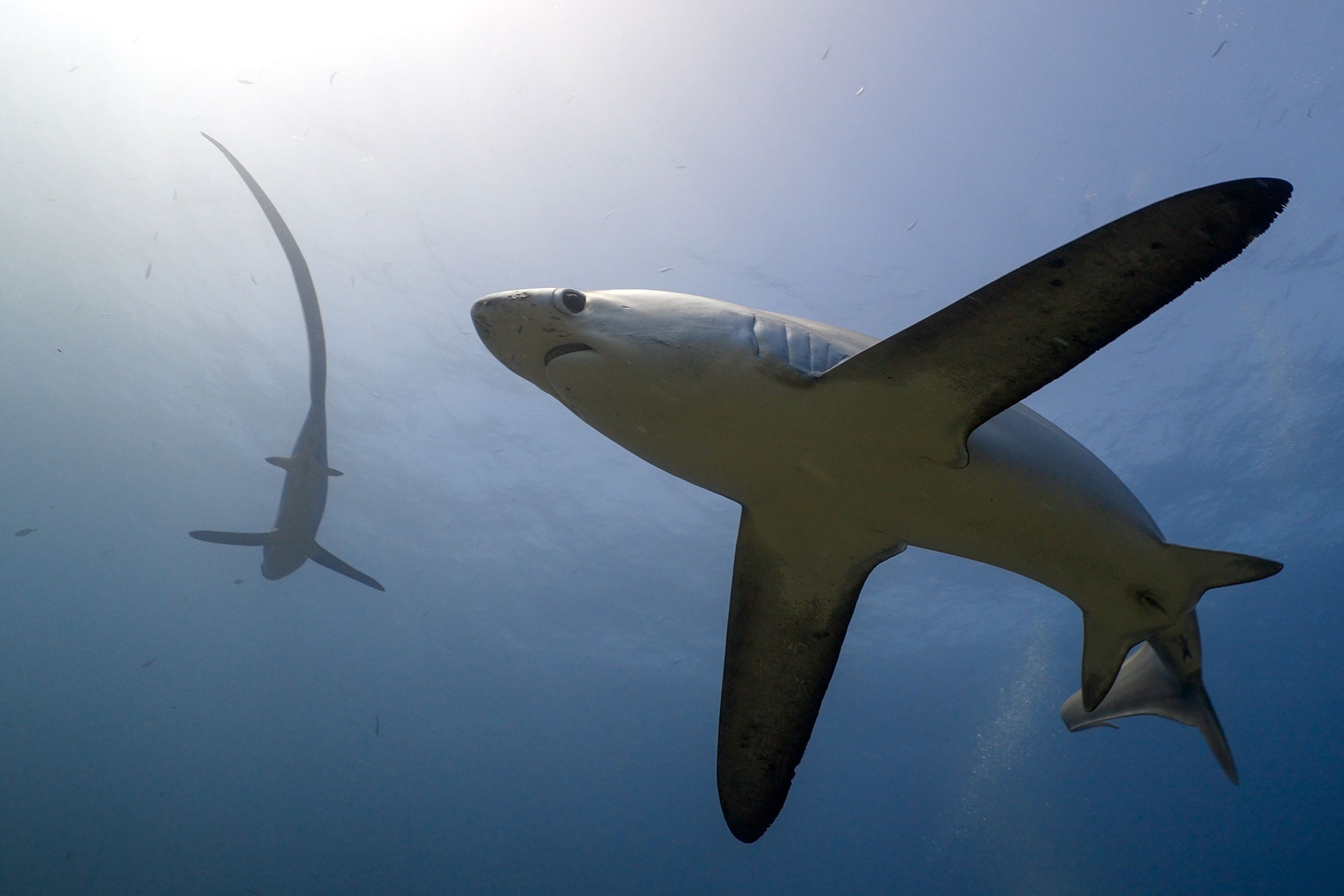 Am früheren Fuchshai Hotspot Monad Shoal haben sich inzwischen einige Tigerhaie angesiedelt und mit etwas Glück und einigen Tauchgängen am Spot, treffen wir auch wir auf diesen Top Predator.