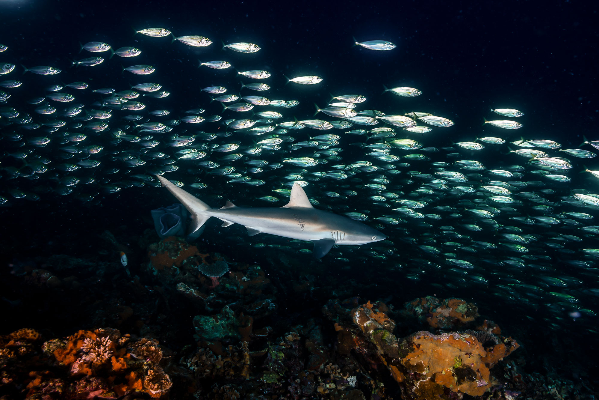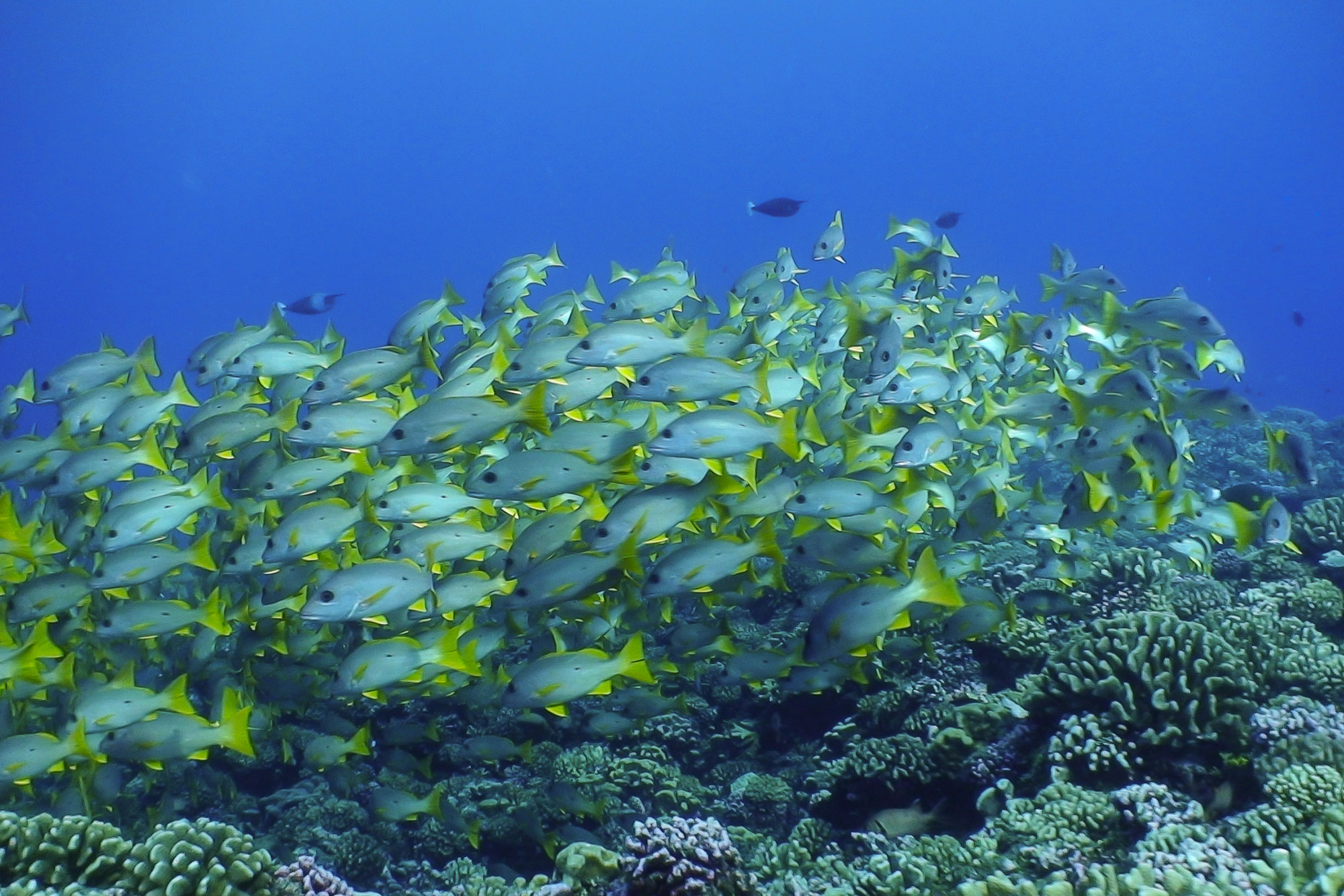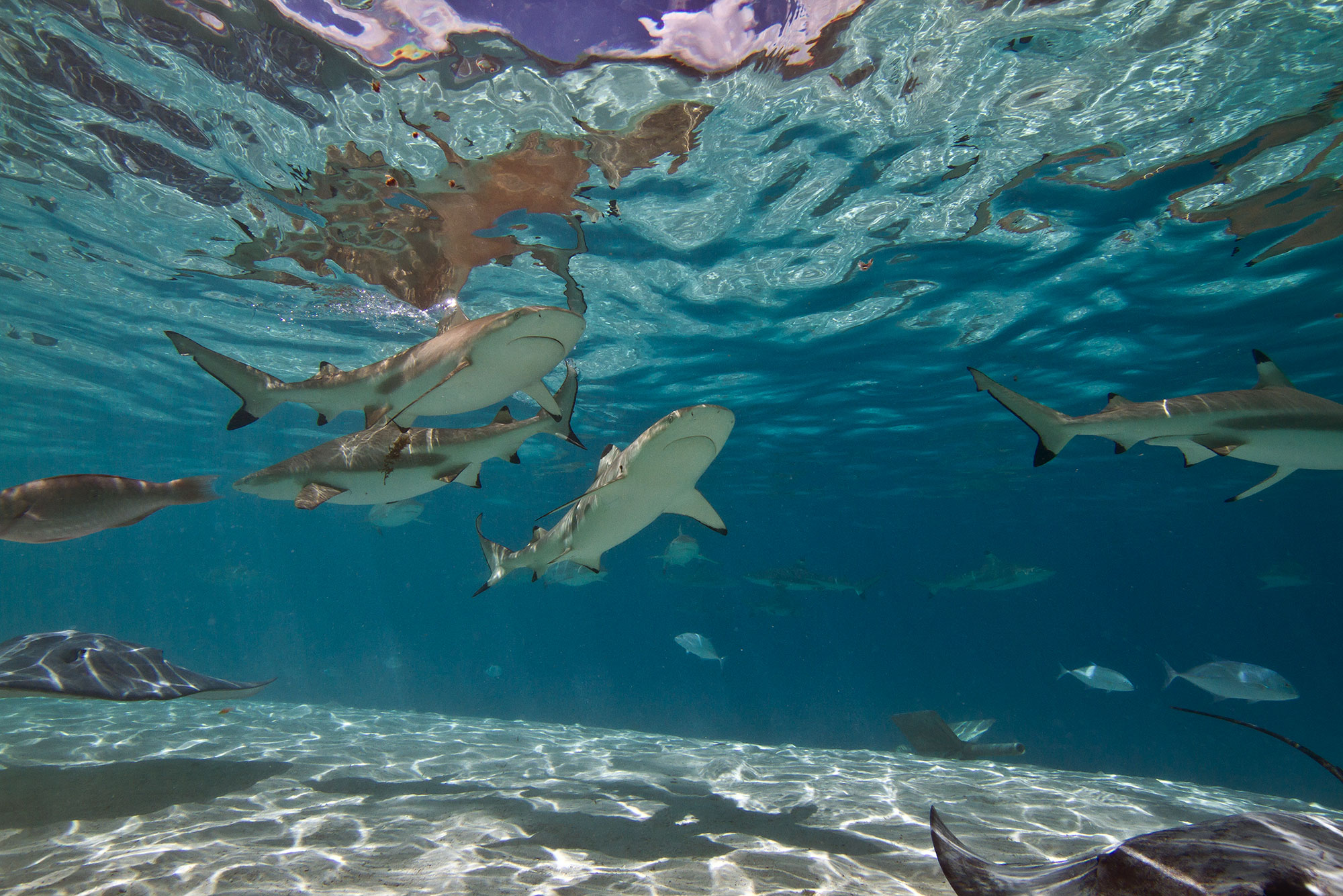 Tauchen Sie mit hunderten grauen Riffhaien an den spektakulärsten Pässen der Tuamotus, entdecken Sie Hochseebewohner, wie Mantas und den Großen Hammerhai. Tauchen Sie ein in riesige Fischschwärme oder genießen Sie die intakte und bunte Artenvielfalt polynesischer Hartkorallenriffe.