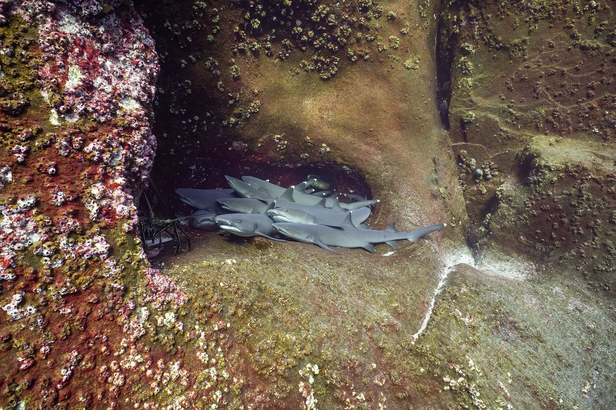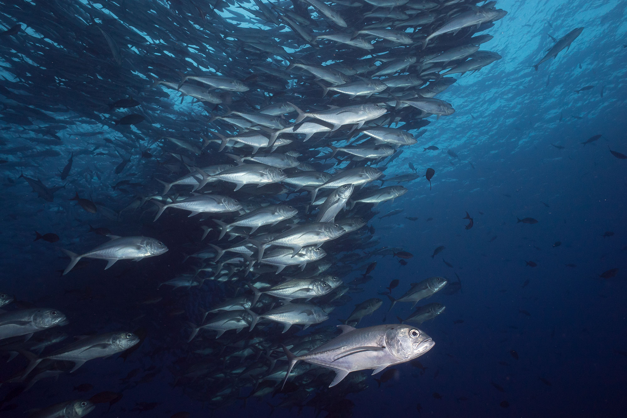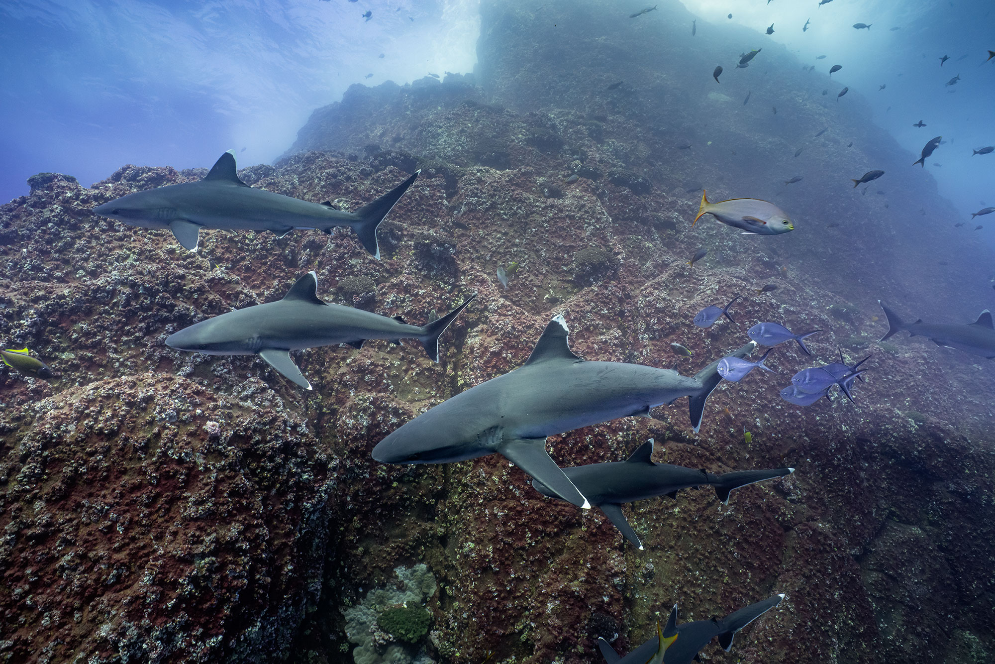 Roca Partida ein einsamer Fels in Mitten des Pazifiks ist immer gut für Überraschungen. Vorbeiziehende Walhaie, Schulen an Silberspitzhaien an den Putzer Stationen und riesige Bonitoschwärme sind häufige Fotomotive für uns Taucher. Riesige Yellow Fin Thunas jagen zu später Stunde nach Beute und wer schon mal einen 1,5m Thunas vor sich hatte, weiß das ein Riff Hai dagegen wirkt wie ein Kleinkind.