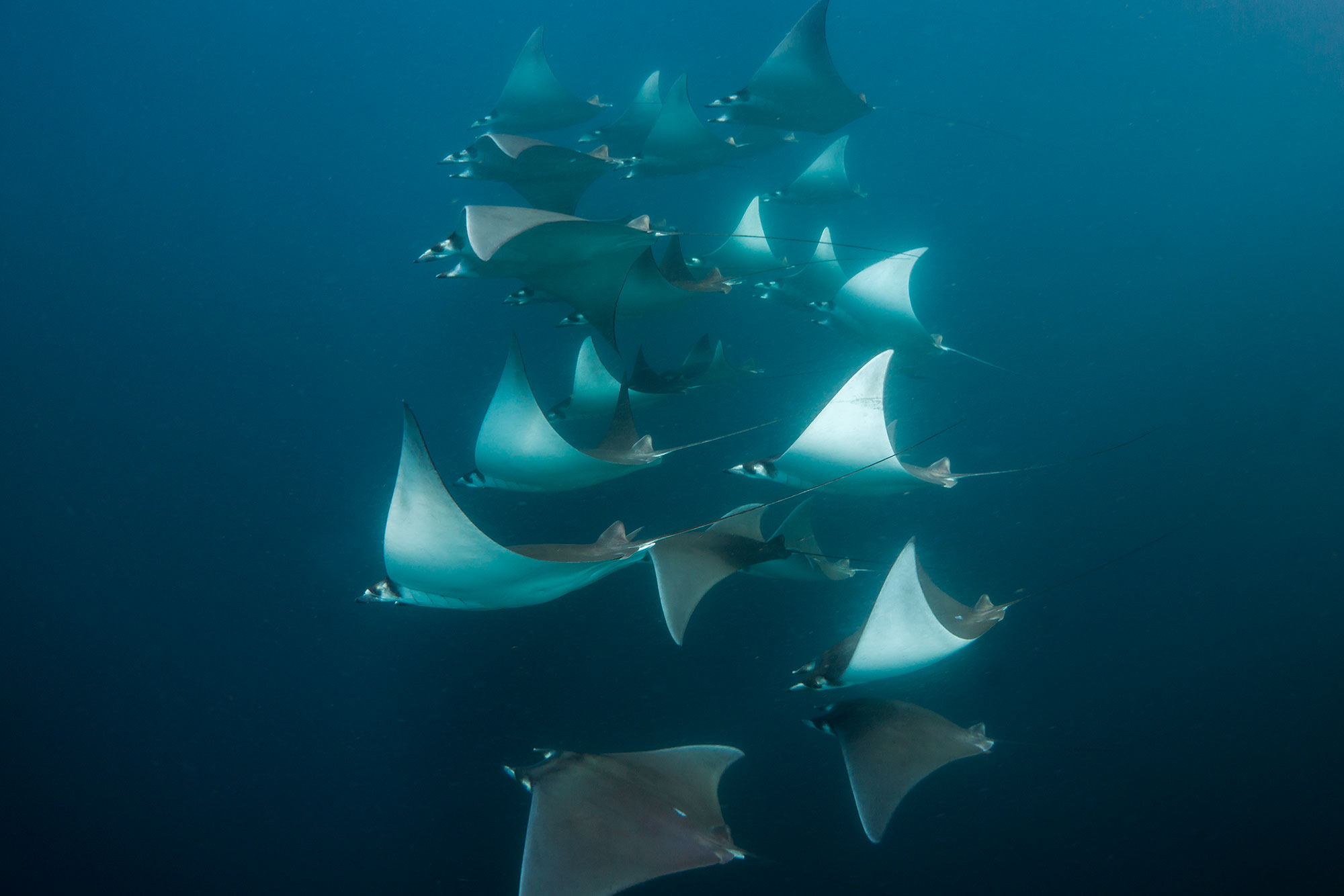 Socorro Archipel – Tauchplätze wie Canyon und Boiler in San Benedikto oder Cabo Piere in Socorro sollten vielen Tauchern ein Begriff sein. Die Top Tauchplätze an den Inseln machen zuverlässig einzigartige Begegnungen mit Riesenmantas, Hammerhaien, Galapagoshaien bis hin zum Tigerhai für uns Taucher möglich. Die wohl zutraulichsten Delphine der Welt lassen Taucherherzen glühen, wenn Sie vor einem stehen bleiben, mit den Kopf wackeln und langsam wie ein Taucher Blubberblasen ablassen. Erlebnisse, die Ihres gleichen suchen.