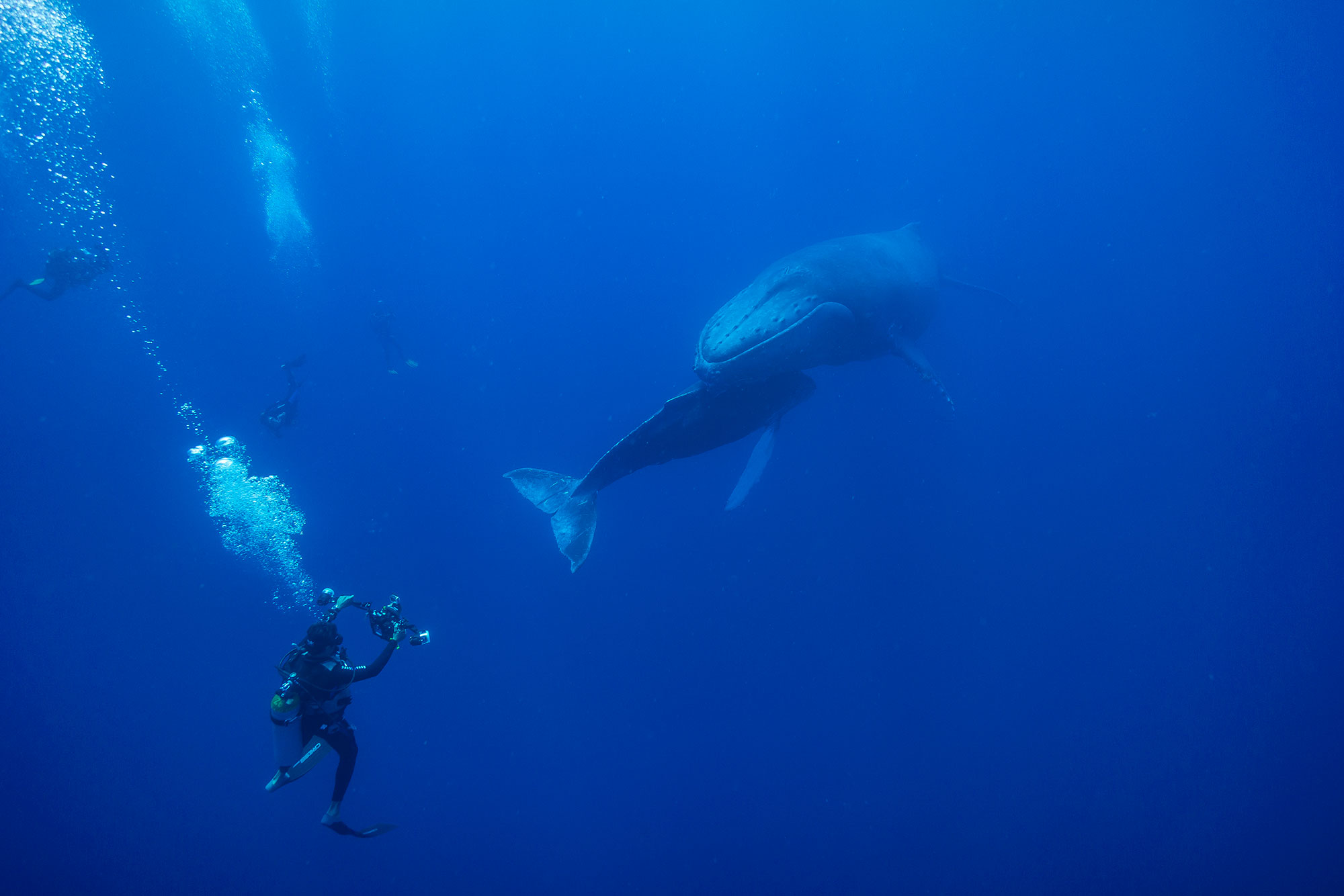 Wir wollen ehrlich mit Ihnen sein. Die folgenden Zeilen basieren auf unserer eigenen Erfahrung zahlreicher Touren zu den Socorro Inseln während der Buckelwalsaison. Während einer Tauchsafari zu den Socorro Inseln besteht eine hohe Wahrscheinlichkeit, dass man auf Buckelwale trifft. Meist hört man ihre Gesänge während des Tauchgangs, ohne die Tiere aber selbst zu Gesicht zu bekommen – vor allem in Socorro und in San Benedicto. Die Wale halten meist Distanz zum Riff, so dass wir sie als Taucher nicht erspähen können.