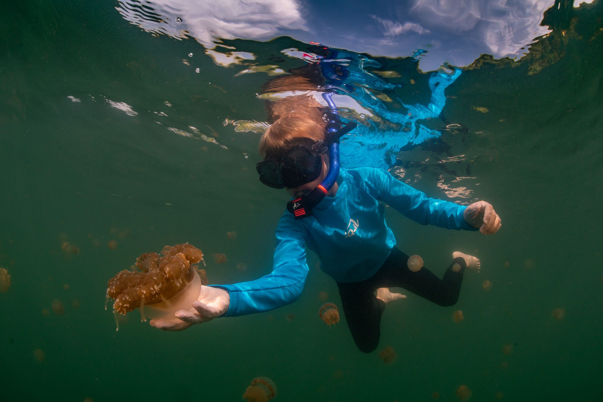 Ein absolutes Highlight jedoch ist der Brackwassersee im inneren der Insel. Er ist nicht nur einer der wenigen Seen auf diesem Planeten der tausende nicht nesselnde Quallen beherbergt, sondern auch mit Sicherheit der schönste. Zahlreiche endemische Anemonen und Fischarten sind zu finden und die Mangrovenwurzeln an den Ufern des Sees sind bewachsen mit bunten Schwämmen. Farbenprächtiger als die meisten Korallenriffe.