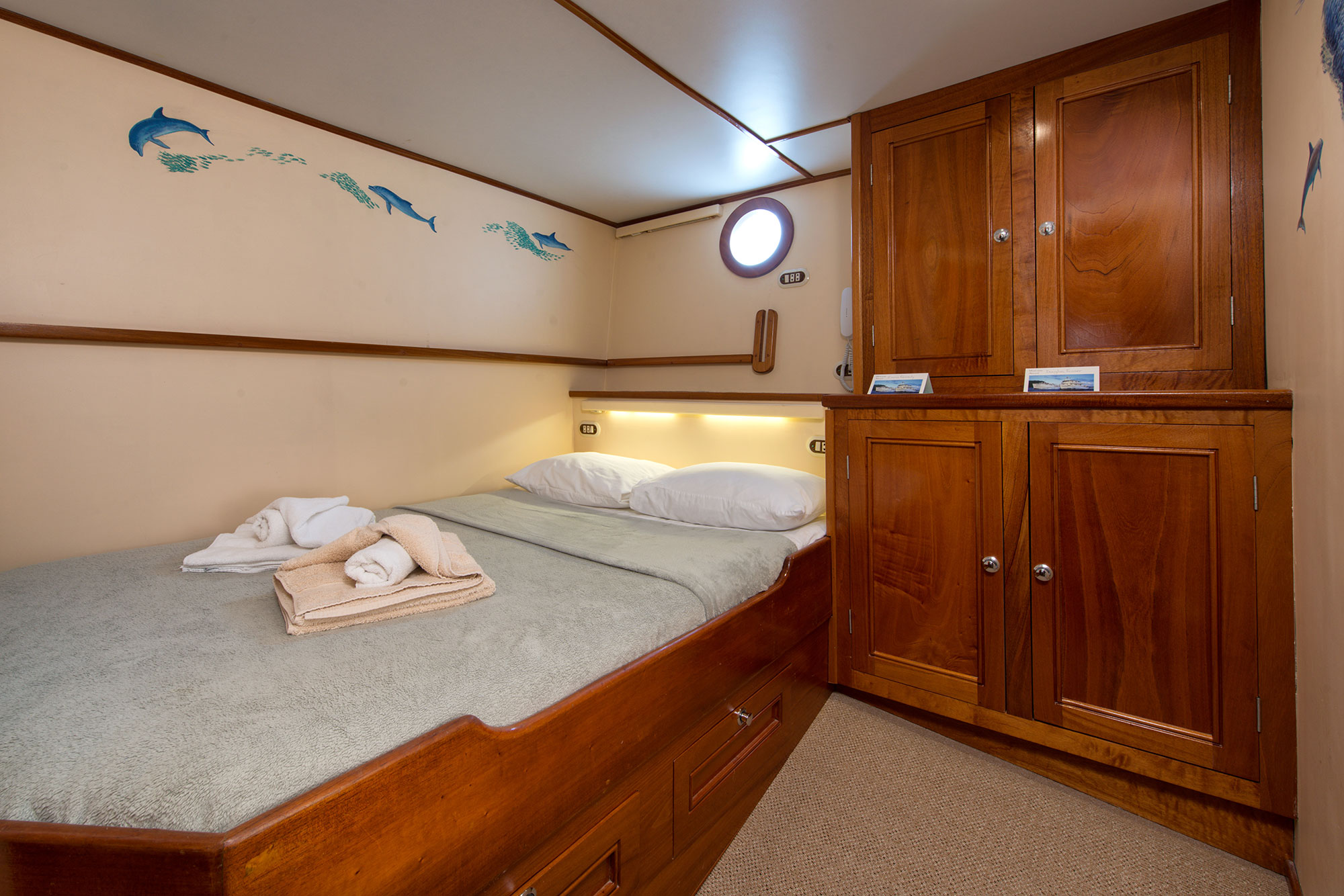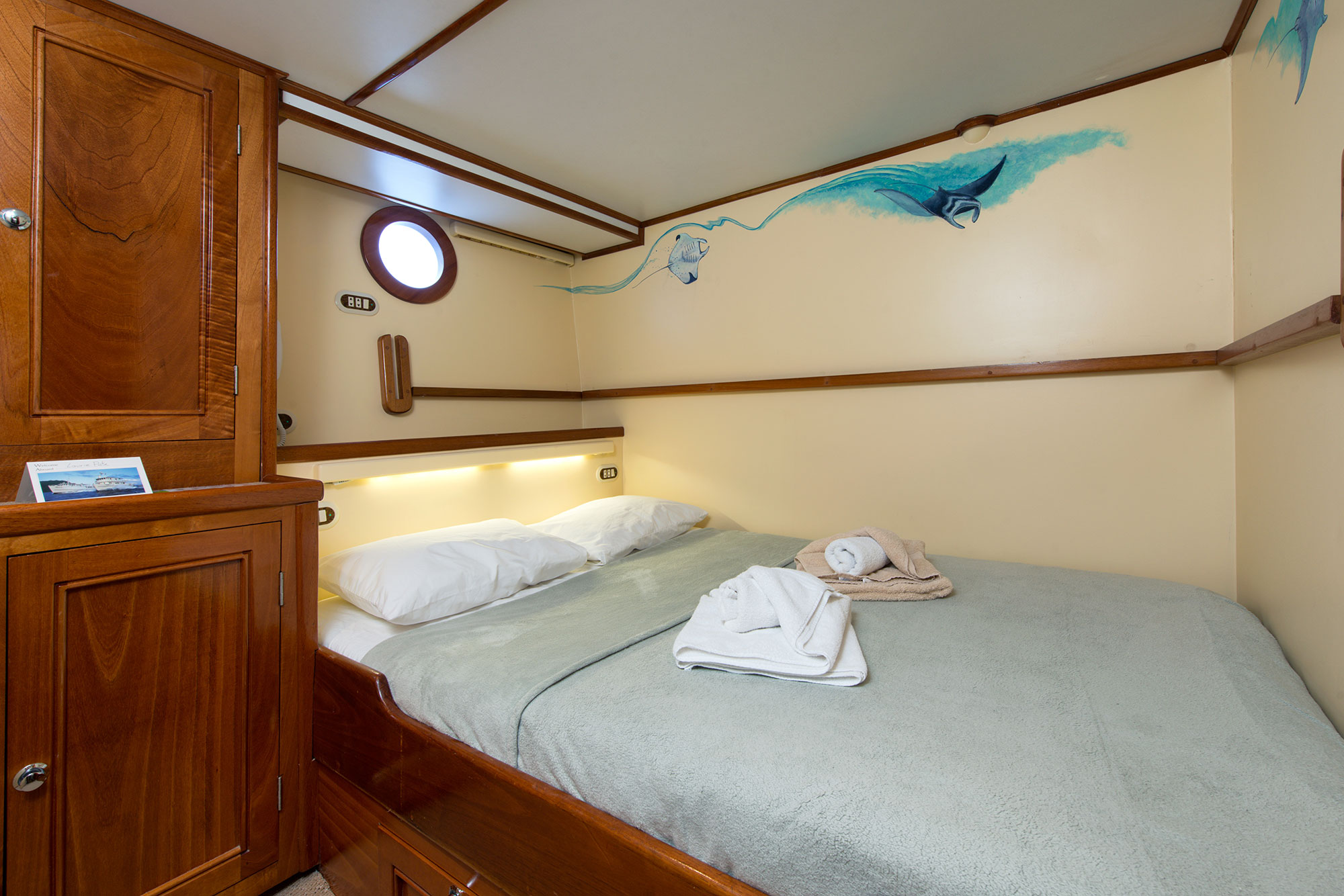 Die Seahunter verfügt über 10 Kabinen für max. 20 Personen. Jede Kabine ist klimatisiert und besitzt ein eigenes Badezimmer mit Dusche/WC und Stauraum für persönliche Sachen.