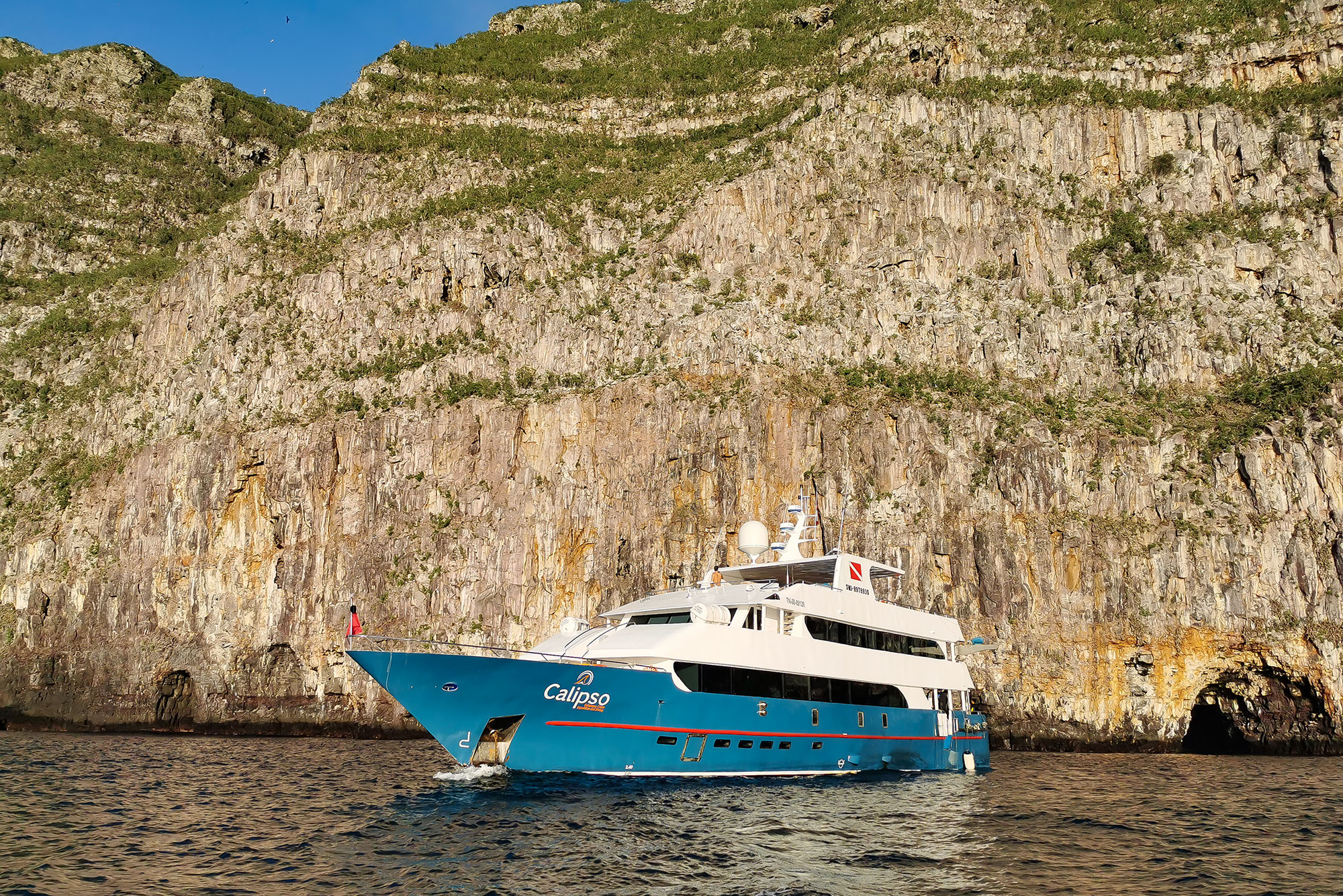 Die ehemalige Flamingo wurde Anfang 2019 komplett umgebaut und modernisiert und fährt nun als „Calipso“ einwöchige Tauchsafaris und einwöchige Naturkreuzfahrten in die Inselwelt Galapagos. Die 33 Meter lange und 7,2 Meter breite Stahlyacht ist selbstverständlich mit allen Navigations- und Sicherheitsvorrichtungen ausgestattet.