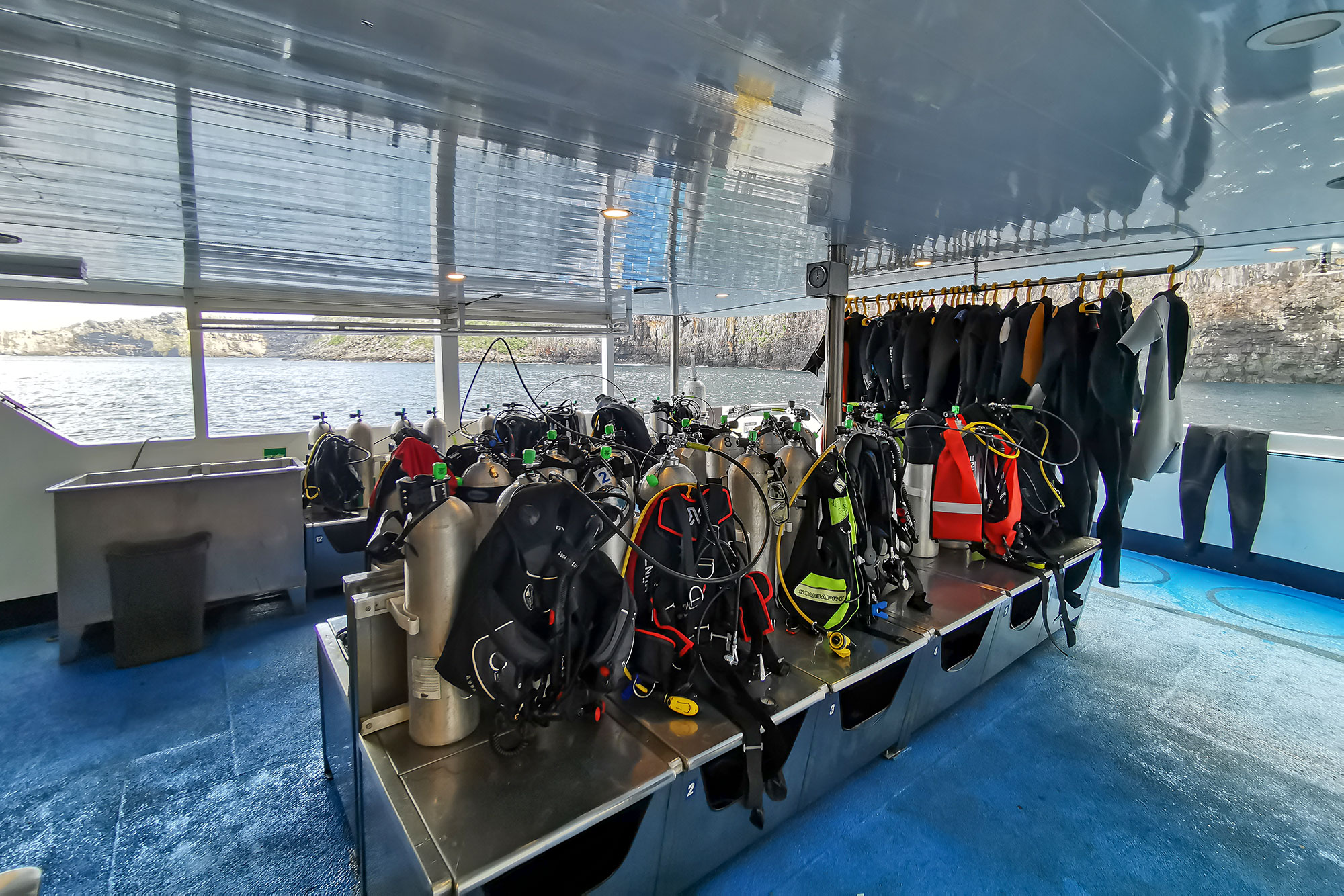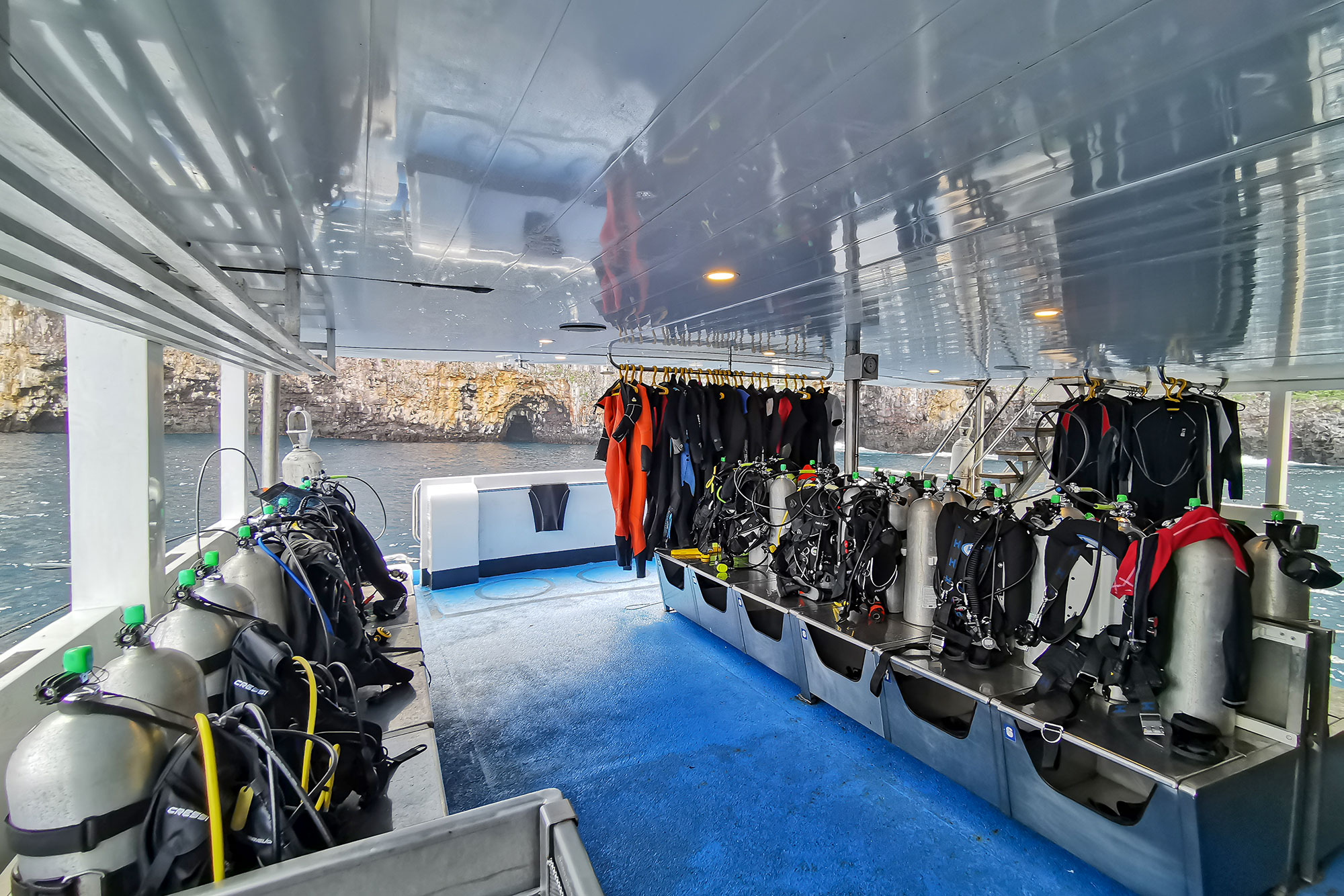 - Großes, durchdachtes Tauchdeck mit Duschen und WC
