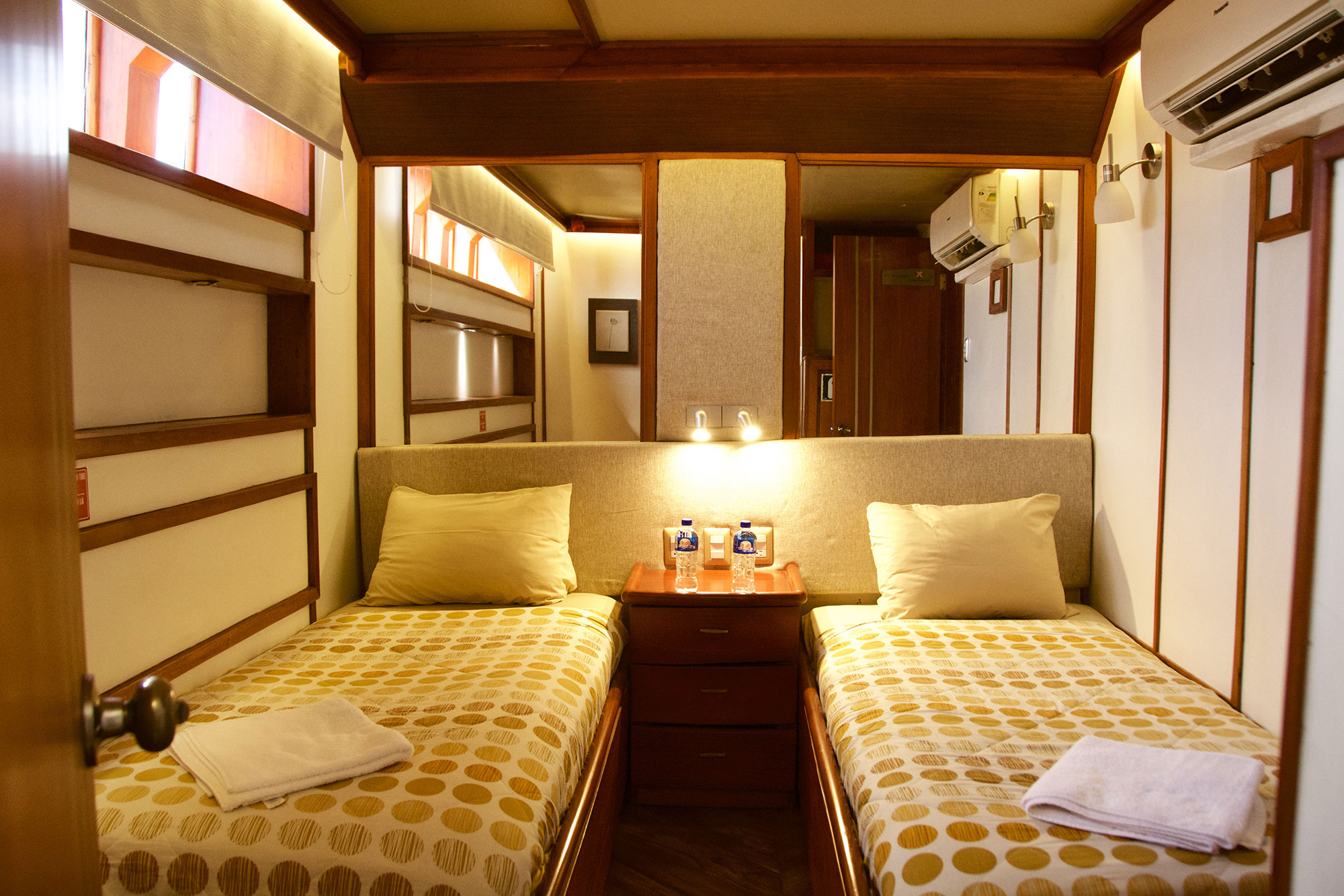 Die Humboldt Explorer nimmt maximal 16 Gäste an Bord, die in 8 Kabinen Platz finden. Alle Kabinen verfügen über 2 Einzelbetten oder ein Doppelbett, Ablagemöglichkeiten, TV, eine individuell regulierbare Klimaanlage und ein privates Bad mit Dusche/WC.