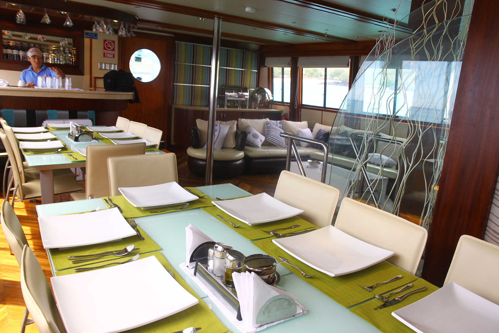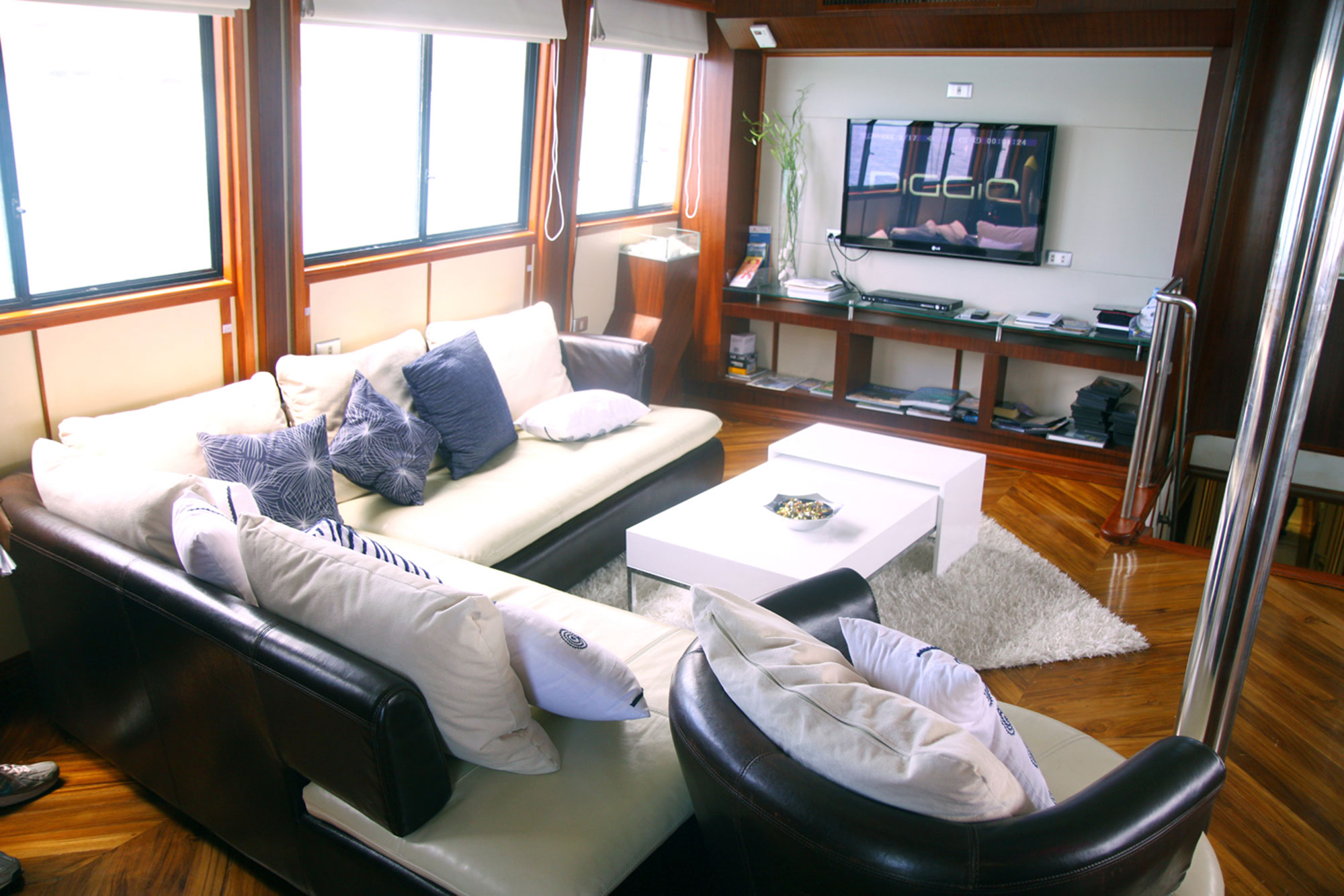 - Klimatisierter Salon mit Sofas und Entertainment Ecke und Bar