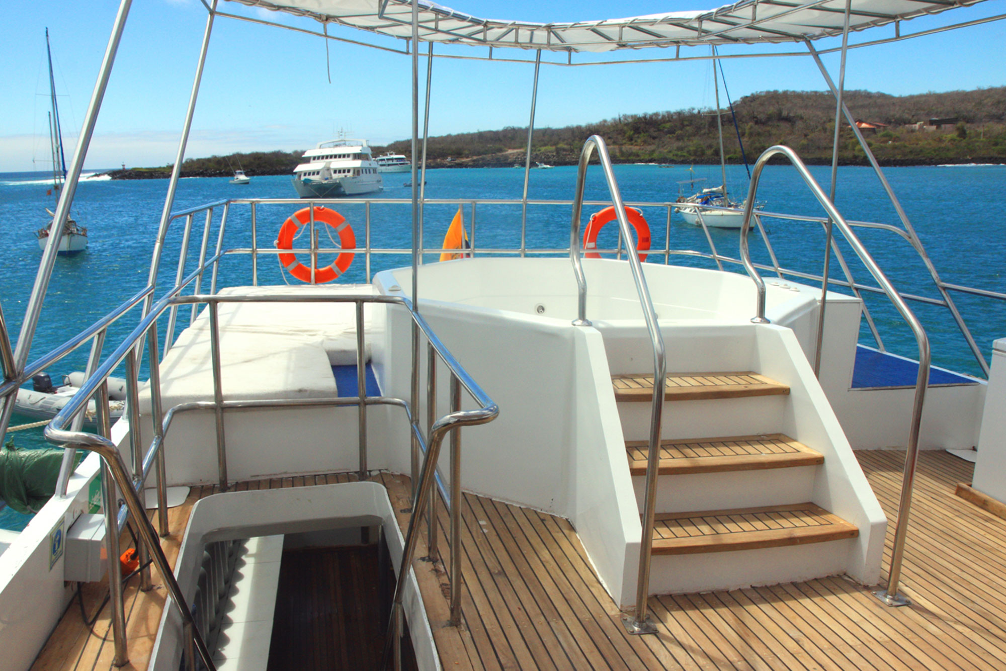 - Großes Tauchdeck mit Duschen und Spülbecken für Ausrüstung und Kameras