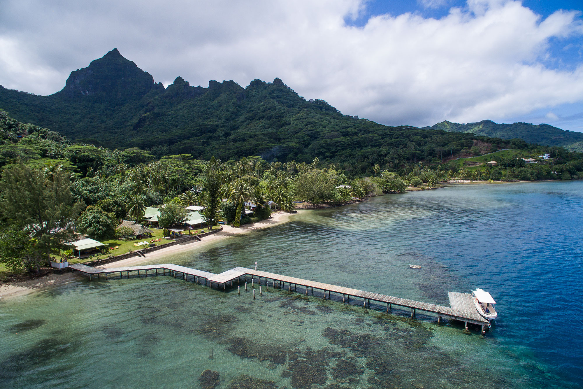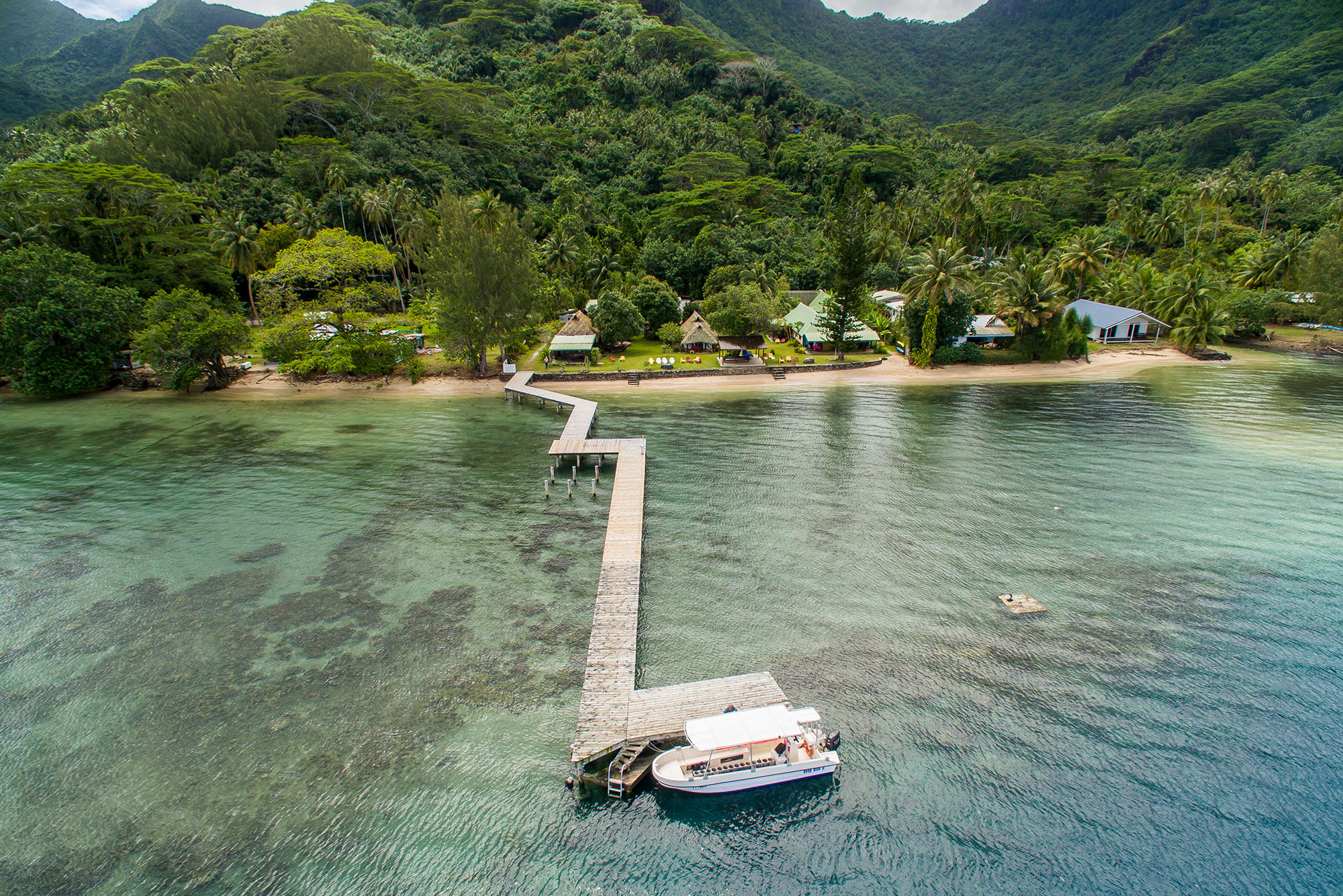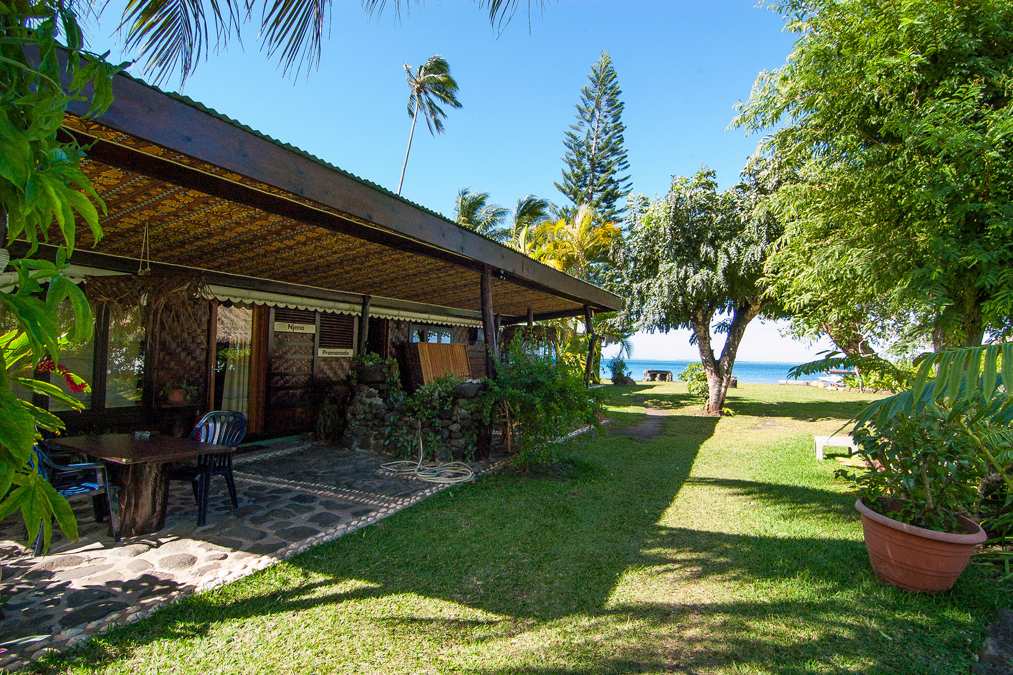 Das von seinen Besitzern Vanessa und David liebevoll geführte „Residence Linareva“ liegt wundervoll direkt am Sandkieselstrand mit einem Holzsteg zum Hausriff. Im glasklaren Wasser sieht man sogar kleine Haie vorbei ziehen. Die Pension befindet sich in der Nähe des Ortes Haapiti und somit ca. 6 km vom eigentlichen Touristenort mit den meisten Geschäften und Restaurants entfernt.