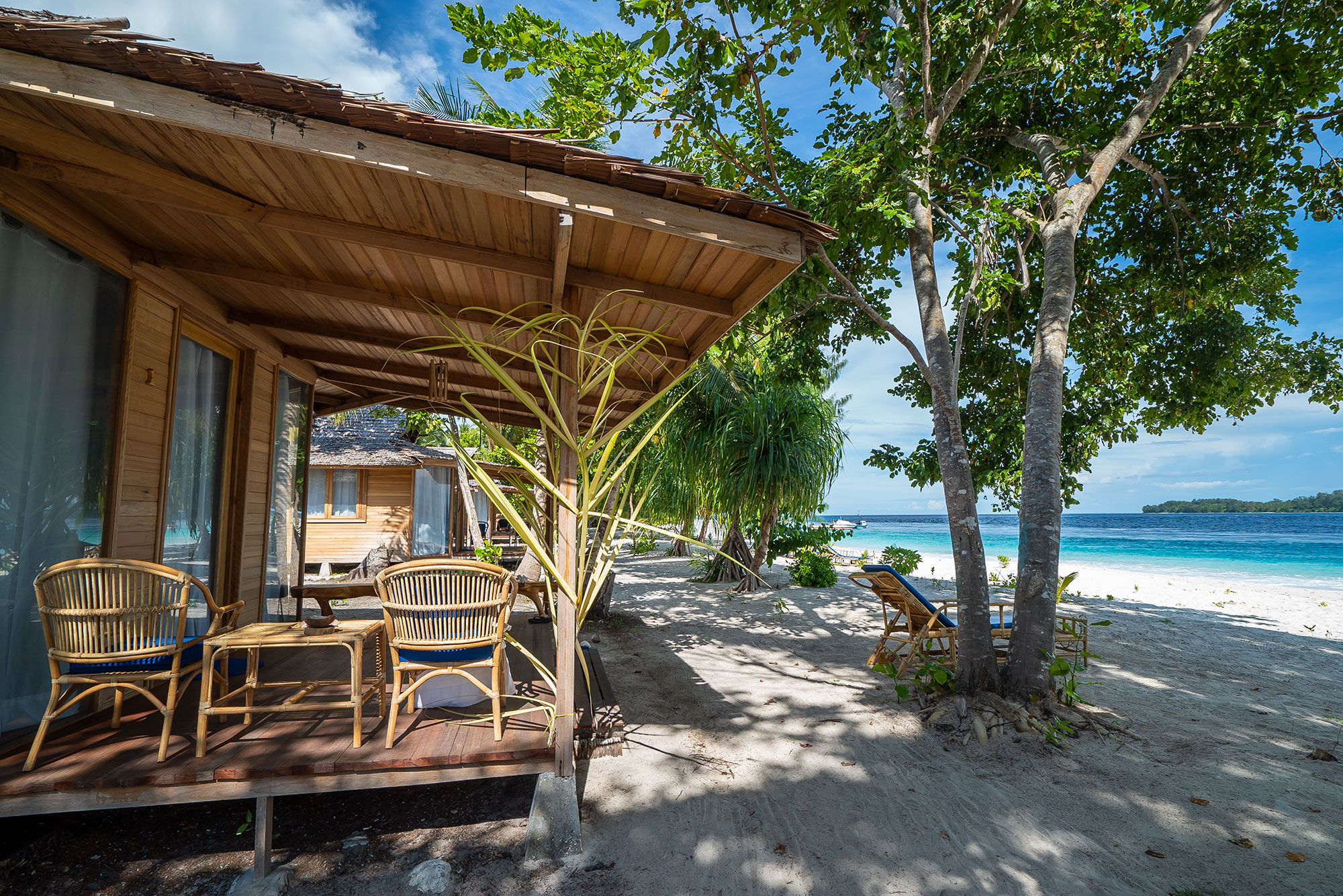 Das Resort verfügt über 10 alleinstehende geräumige Strand Bungalows, aufgeteilt in Superior und Deluxe Bungalows. Sie sind ausgestattet mit Klimaanlage, einem breiten Himmelbett mit Moskitonetz, einer Loungeecke mit Sofa, einem Arbeitstisch für Unterwasserkameras, Minibar, Safe, großem Kleiderschrank, Bad mit Open Air Dusche (heißes Wasser) und einer privaten Veranda mit Sitzmöbeln jede Menge Komfort. Die Bungalows stehen alle mit Blick zum Meer – nur wenige Meter zurückversetzt – unter Bäumen am feinen Sandstrand.