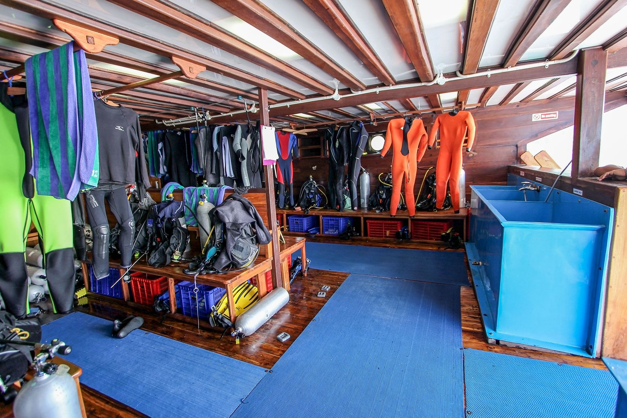 - mehrere Süßwassertanks zum Spülen der Tauchausrüstung