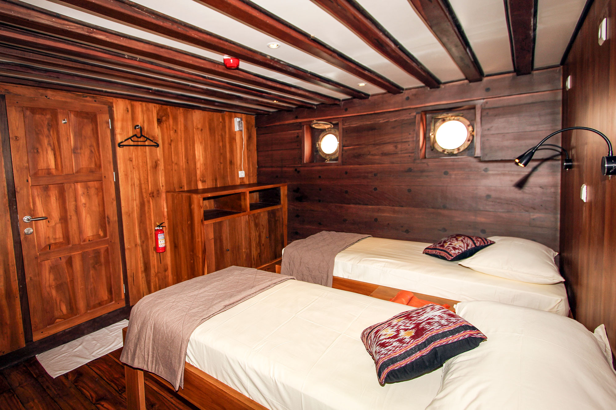 Die Amira nimmt maximal 19 Gäste an Board, die in neun Doppelkabinen (ca. 14 m²) und einer Einzelkabine (ca. 10 m²) untergebracht werden. Jede Kabine verfügt über eine individuell regelbare Klimaanlage, Stauraum in Schränken oder Schubladen, Leselampen über dem Bett und ein privates Badezimmer mit Dusche (Duschvorhang) und WC. Die Doppelkabinen können je nach Bedarf mit einem großen Doppelbett oder zwei Einzelbetten ausgestattet werden.