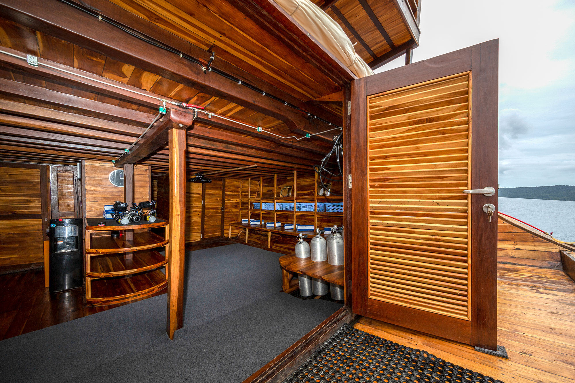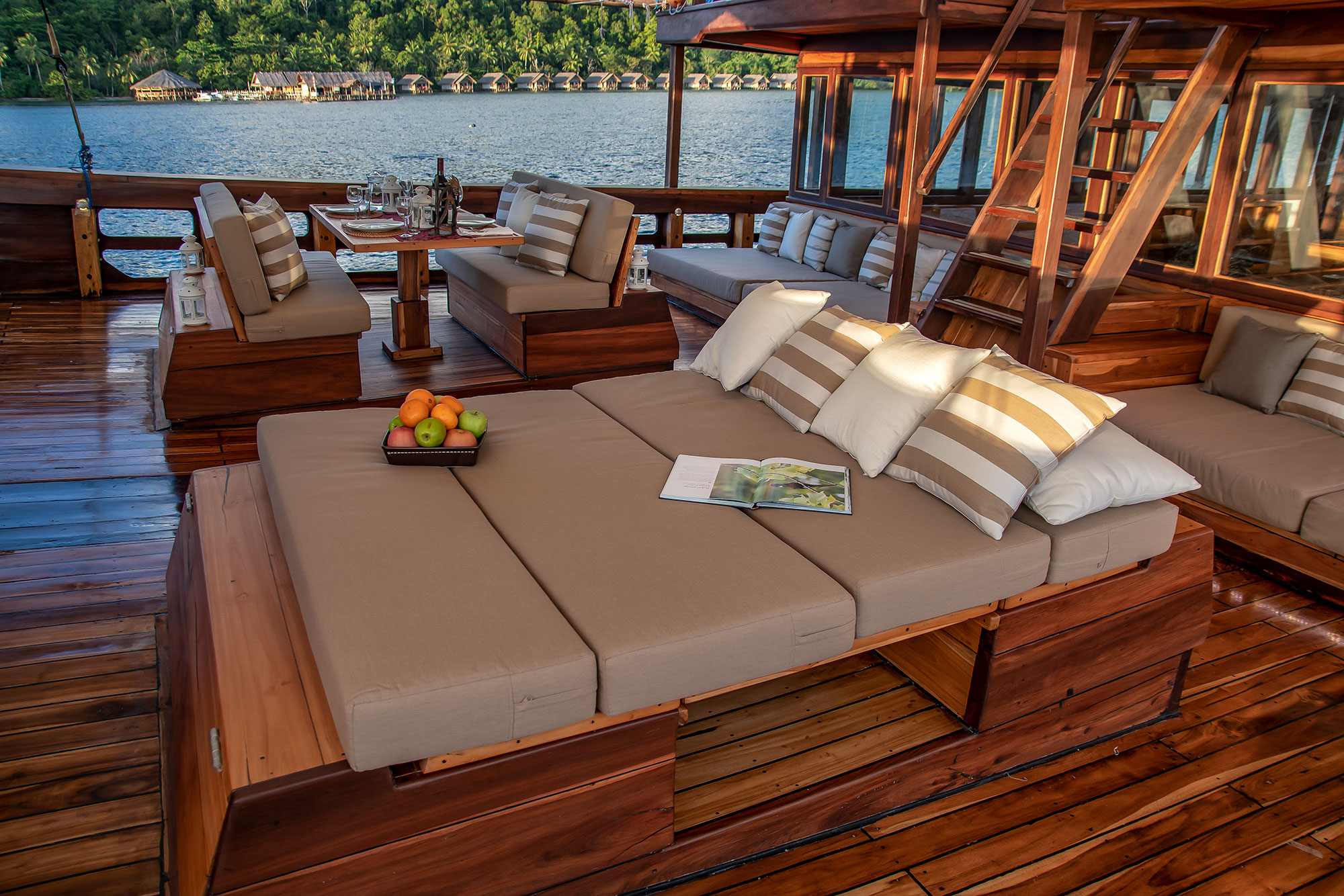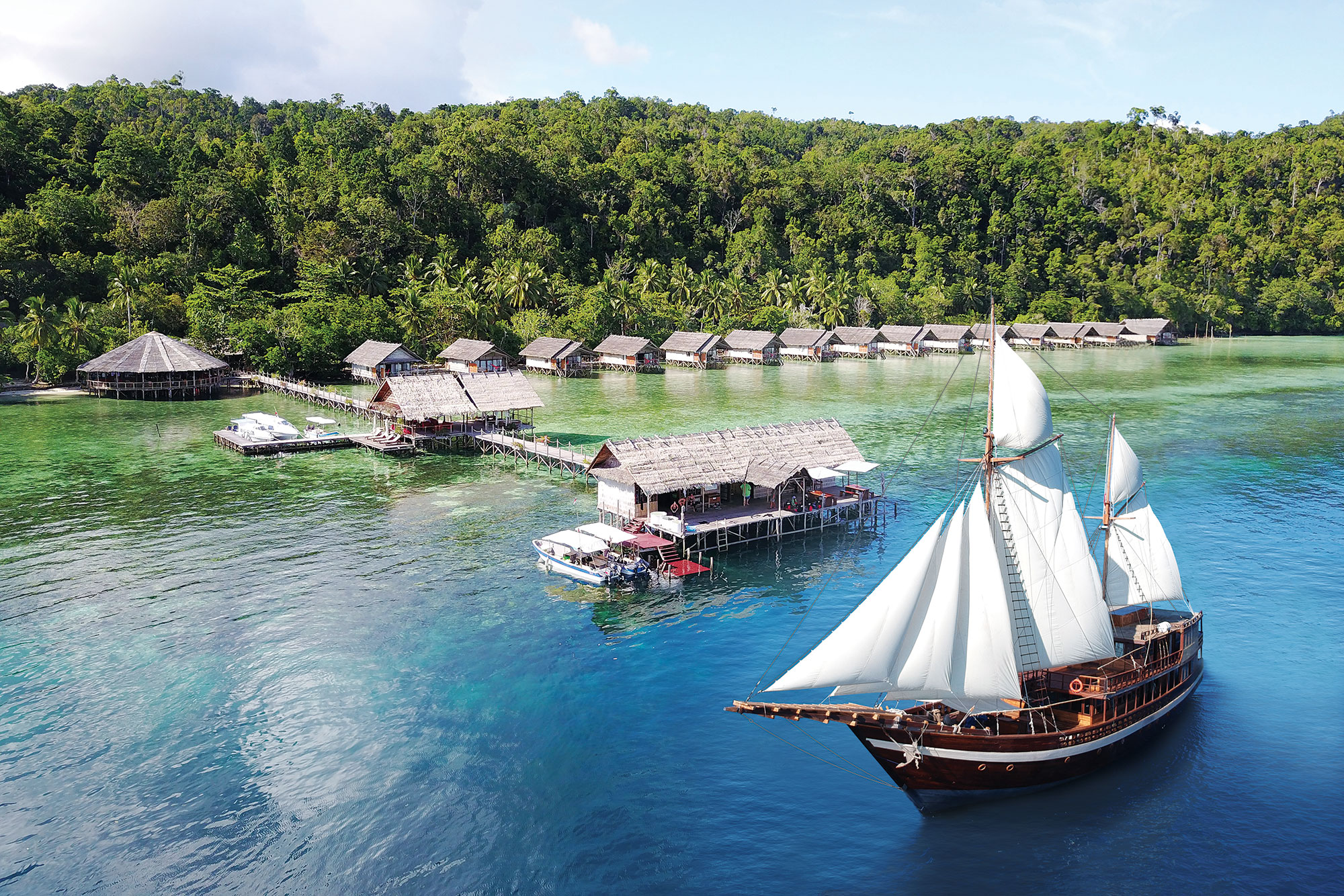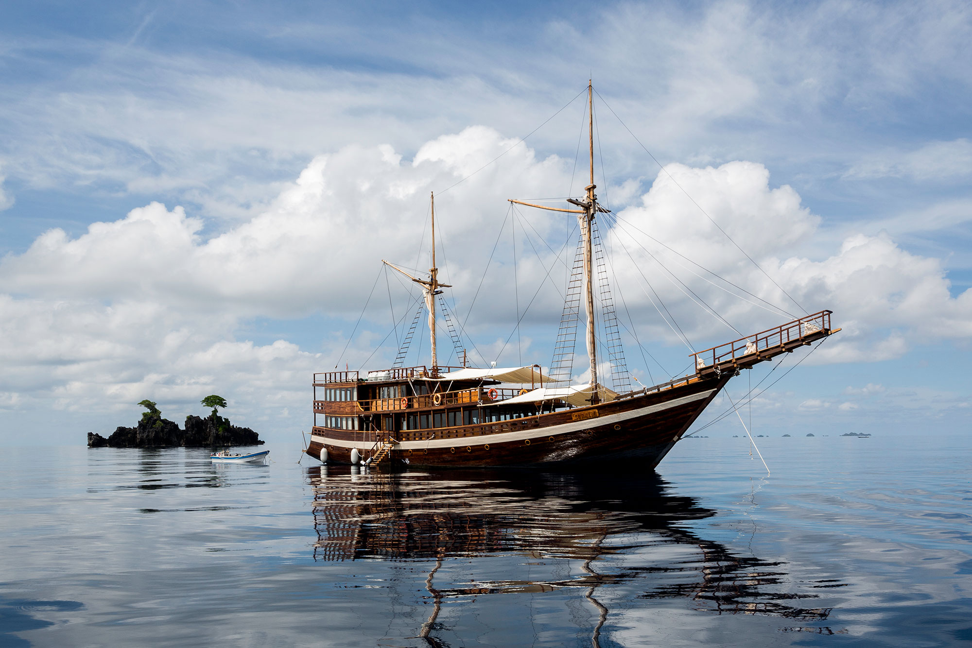 Das Herzensprojekt der sympathischen Besitzer des Papua Explorer Resorts ist der 48 Meter lange Phinisi Schooner „Coralia“. Als passionierte Taucher haben die beiden ein durchdachtes Tauchsafarischiff von Tauchern für Taucher gebaut und wollen ihren Gästen neben den Tauchplätzen um Ihr eigenes Resort in Raja Ampat nun auch die restliche Inselwelt Indonesiens zeigen. Natürlich verfügt die Coralia über die aktuellste Navigations- und Sicherheitstechnik.