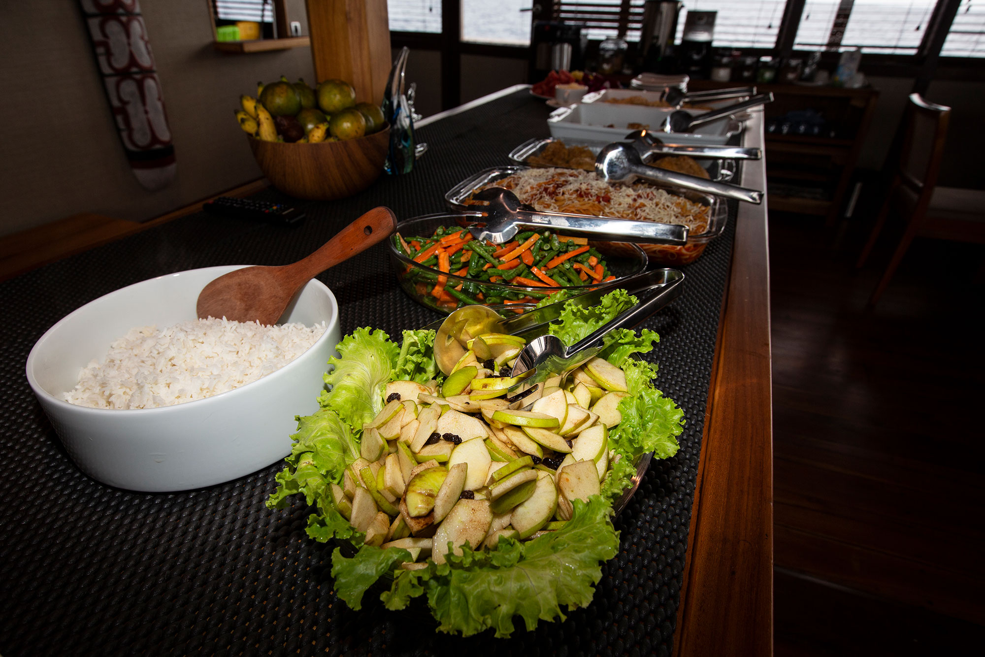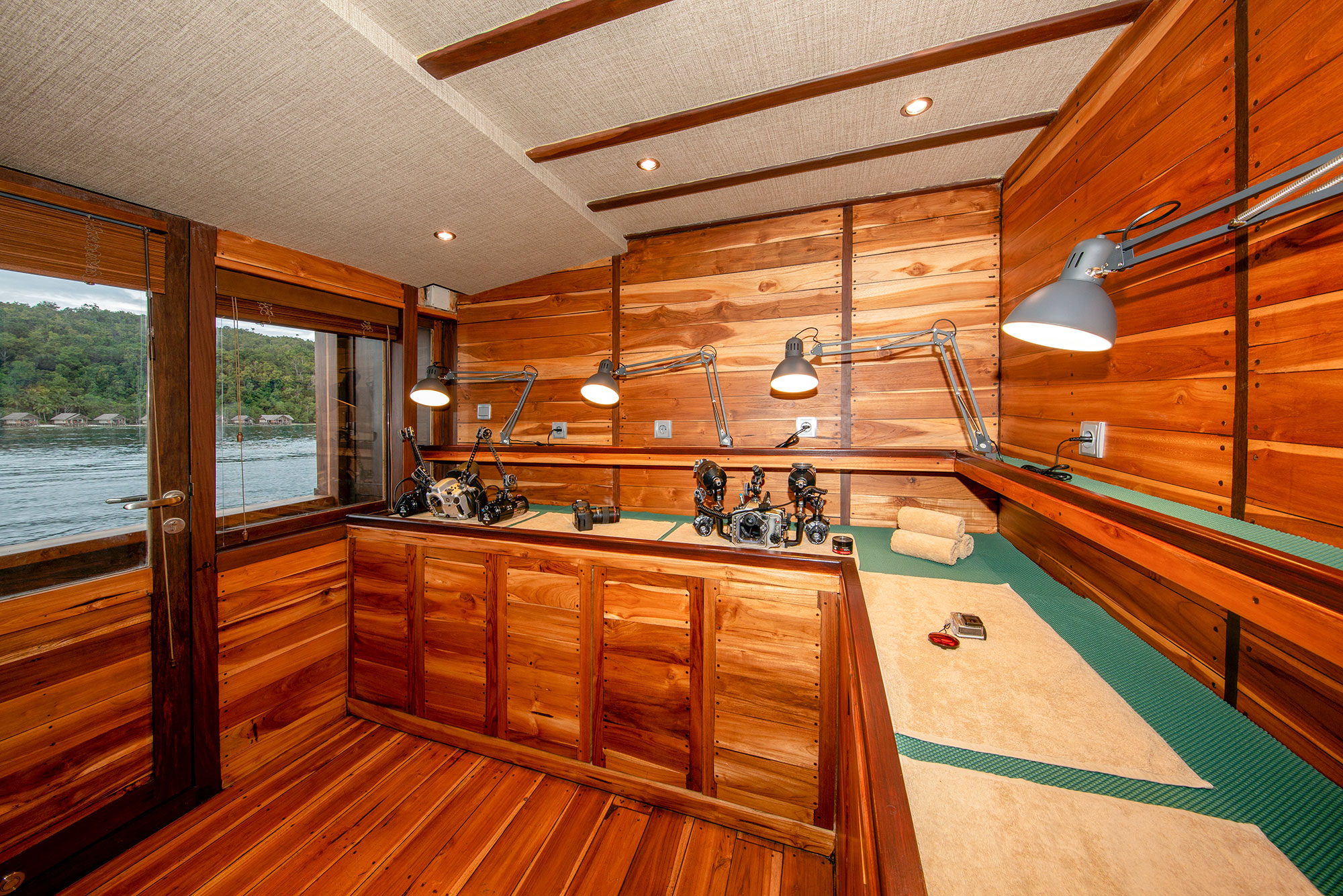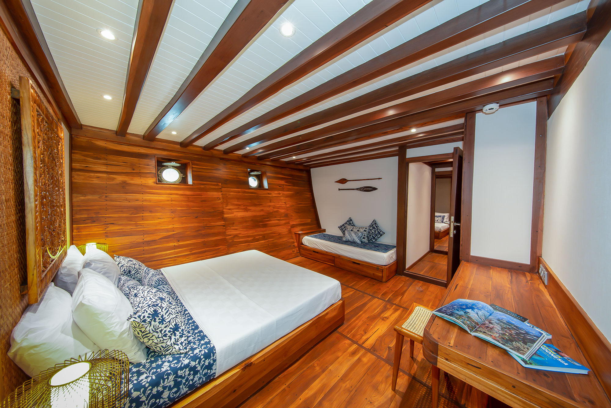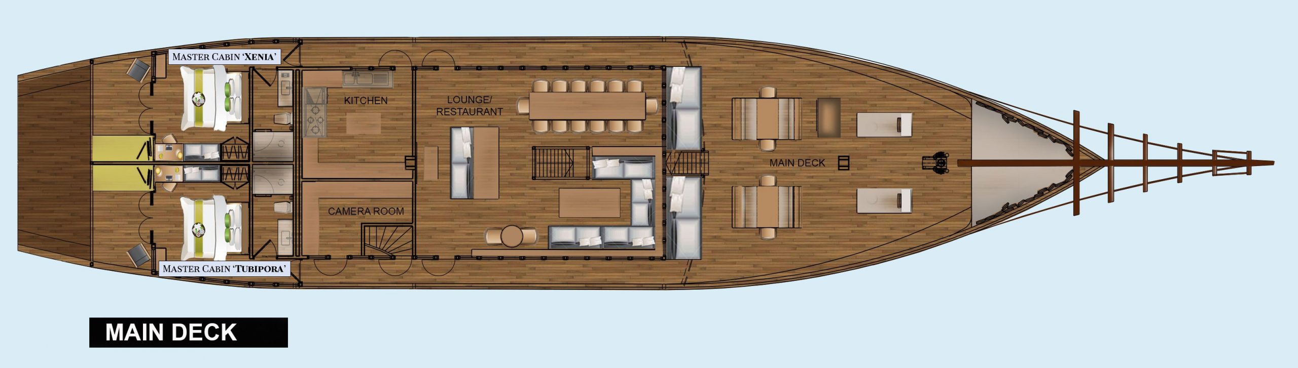 Das Herzensprojekt der sympathischen Besitzer des Papua Explorer Resorts ist der 48 Meter lange Phinisi Schooner „Coralia“. Als passionierte Taucher haben die beiden ein durchdachtes Tauchsafarischiff von Tauchern für Taucher gebaut und wollen ihren Gästen neben den Tauchplätzen um Ihr eigenes Resort in Raja Ampat nun auch die restliche Inselwelt Indonesiens zeigen. Natürlich verfügt die Coralia über die aktuellste Navigations- und Sicherheitstechnik.