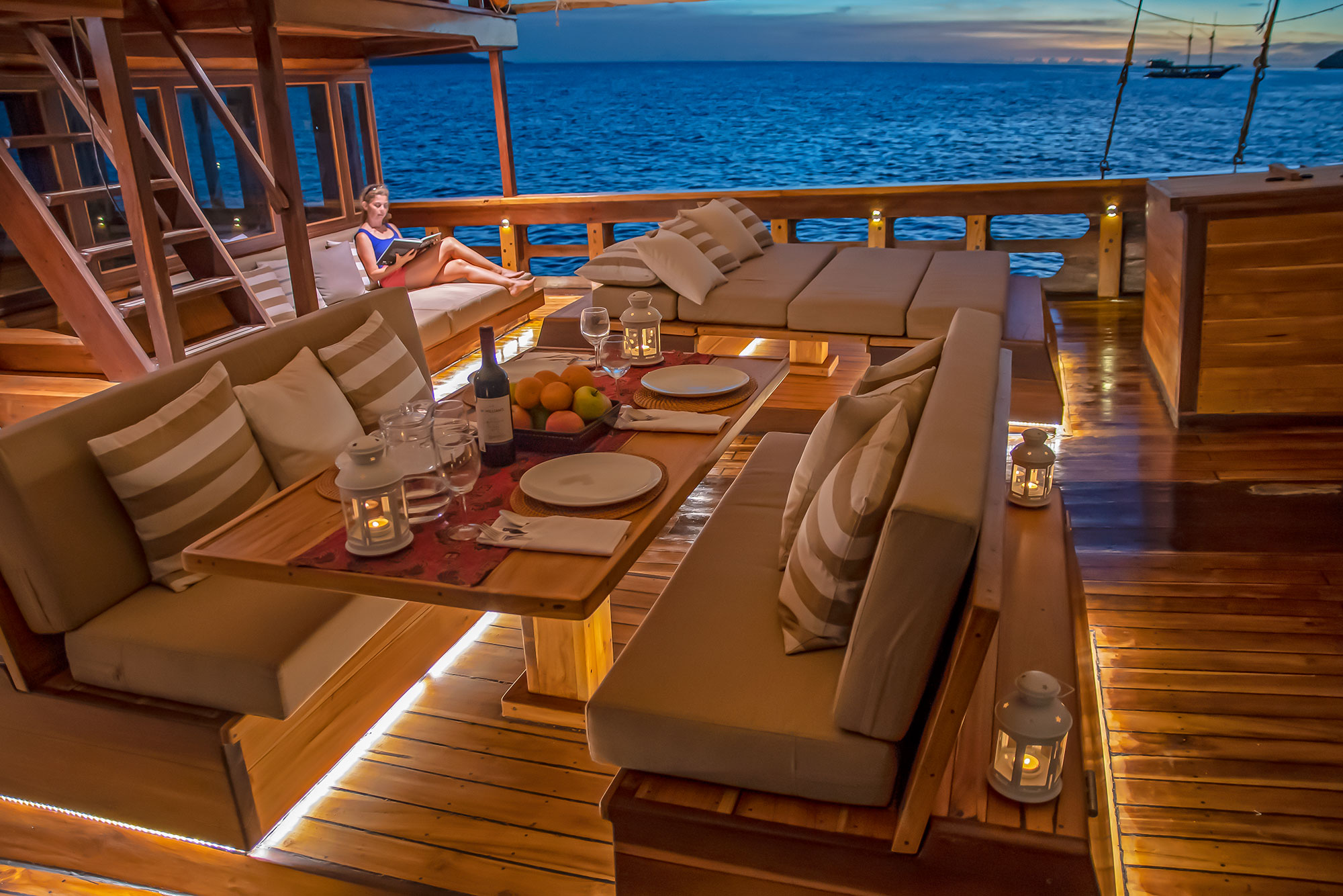 - Outdoor Dining Bereich im vorderen Teil des Hauptdecks