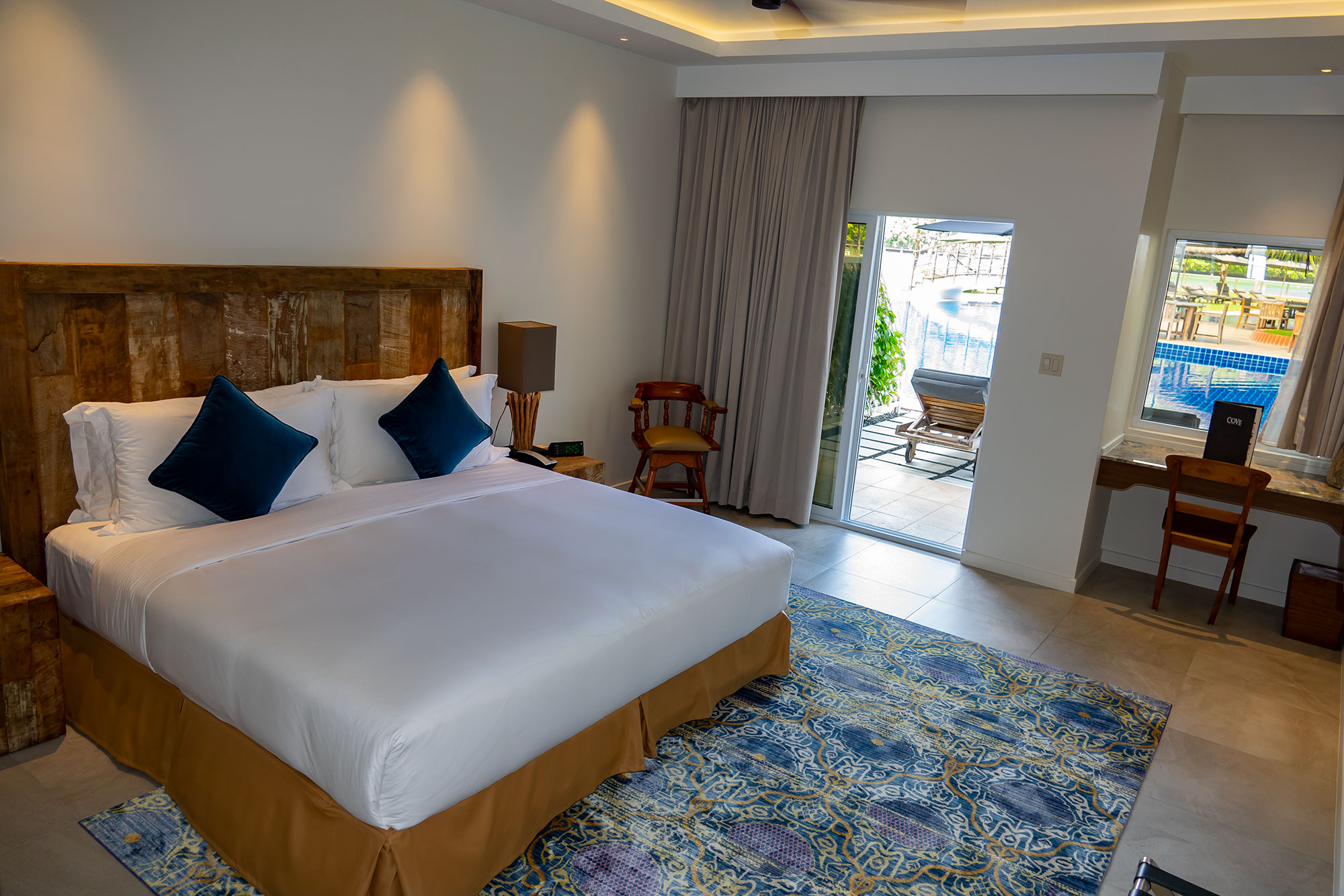 Das Resort verfügt über 71 sehr modern eingerichtete, gut durchdachte Zimmer. Einige davon mit Blick auf die Bucht und auf die dahinterliegende Insellandschaft. Die Unterkünfte sind in 4 Kategorien unterteilt und unterscheiden sich im Wesentlichen nur in der Lage/Blick.