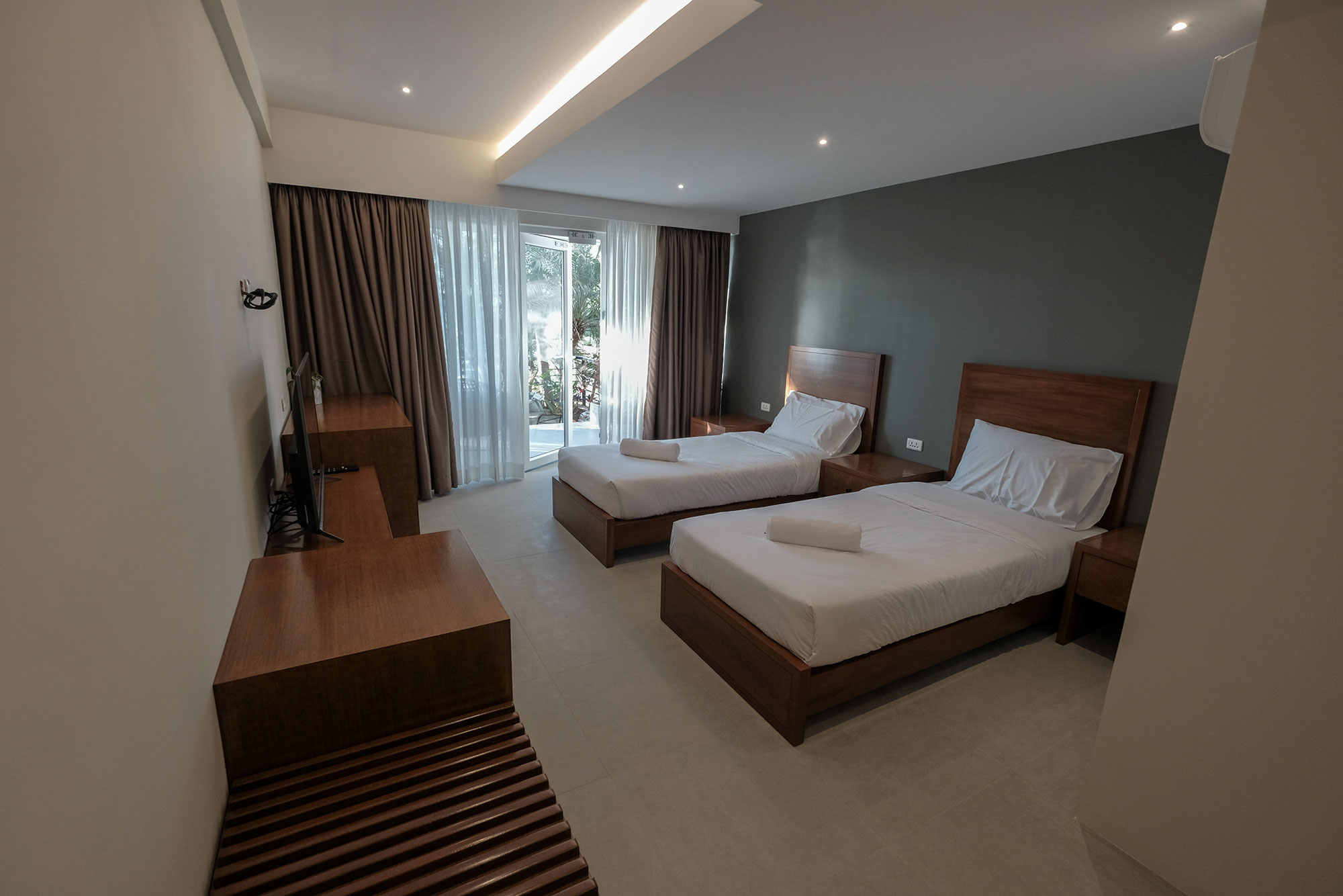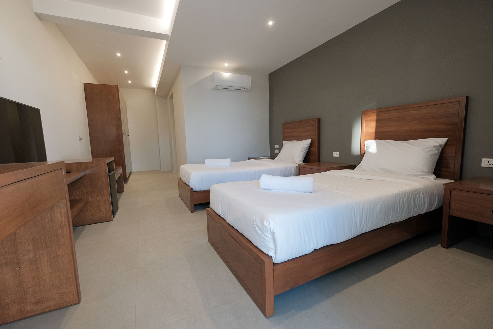 Alle Zimmer sind mit Doppelbett oder 2 Einzelbetten, Klimaanlage, Schreibtisch, TV, Safe, Minibar, Wasserkocher (Kaffee/Tee) und einem eigenen modernen Badezimmer mit Dusche und WC, Föhn, Handtüchern, Shampoo und Seifenspender ausgestattet. Free Wifi in allen Zimmern.