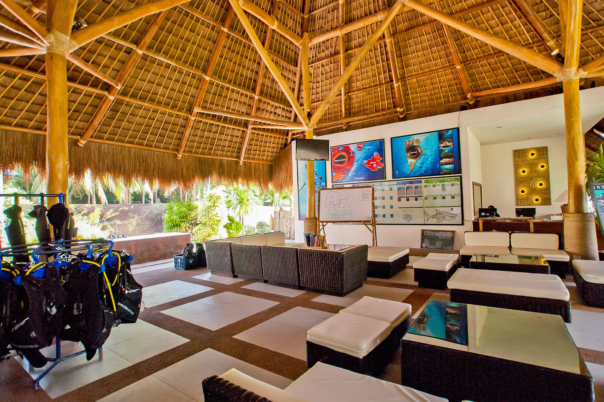 Die angeschlossene großzügig angelegte 5 Star PADI Tauchbasis im Herzen der Anlage verfügt über viel Personal – bis zu 15 Tauchlehrer und Dive Master – die teilweise zusätzlich als Marinebiologen ausgebildet sind – kümmern sich um das Wohl der Taucher. Die angebotene Ausbildung reicht vom Open Water Kurs bis zum PADI OWSI. Obwohl das Resort Gruppen mit bis zu 50 Tauchern stemmen kann, werden die Tauchgruppen klein mit bis zu maximal 4 Tauchern je Guide gehalten.