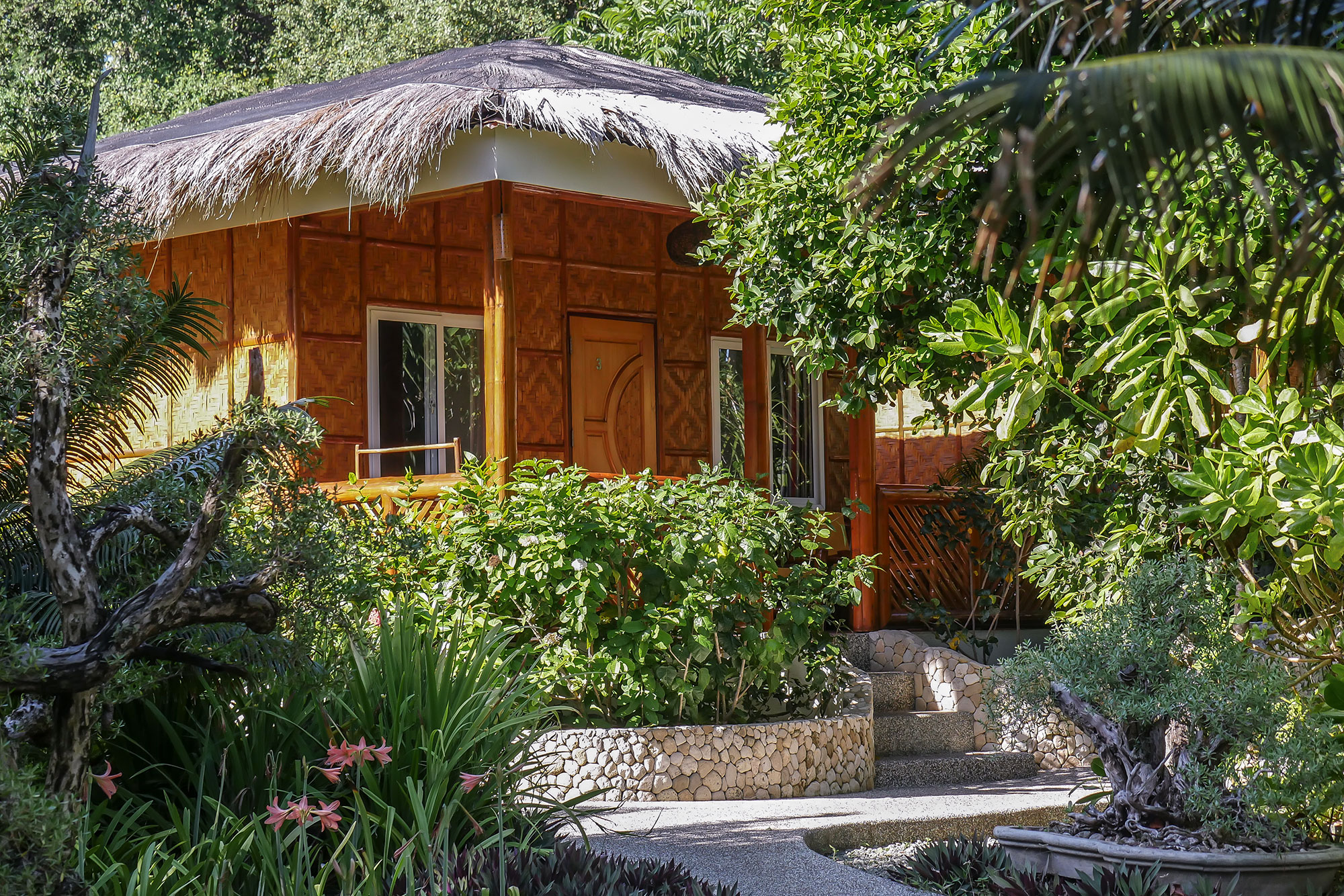Die 16 modernen Bungalows liegen in der blühenden grünen Anlage verteilt und sind verbunden durch viele kleine Wege mit zum Teil versteckten Sitzmöglichkeiten an wunderbar schattigen Plätzen. Jeder der Deluxe Bungalows wurde mit einheimisch gefertigten Möbeln eingerichtet und verfügt über eine private Terrasse mit gemütlichen Sitzmöglichkeiten, ein großes Doppelbett und ein Sofa-Bett, welches bei Bedarf als Einzelbett dienen kann. Zudem findet man im Bungalow einen Kleiderschrank mit integriertem Safe für alle Wertsachen, eine voll ausgestattete Minibar (gegen Gebühr) mit einem Wasserkocher für Tee oder Kaffee. Ein Schreibtisch mit optimaler Beleuchtung für Kamera Vorbereitung und ein für die Region sehr gutes WLAN. Für einen erholsamen Schlaf sorgt in jedem Bungalow eine geräuscharme Klimaanlage.