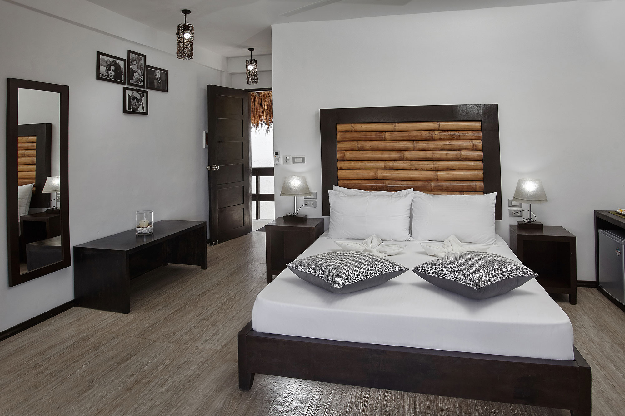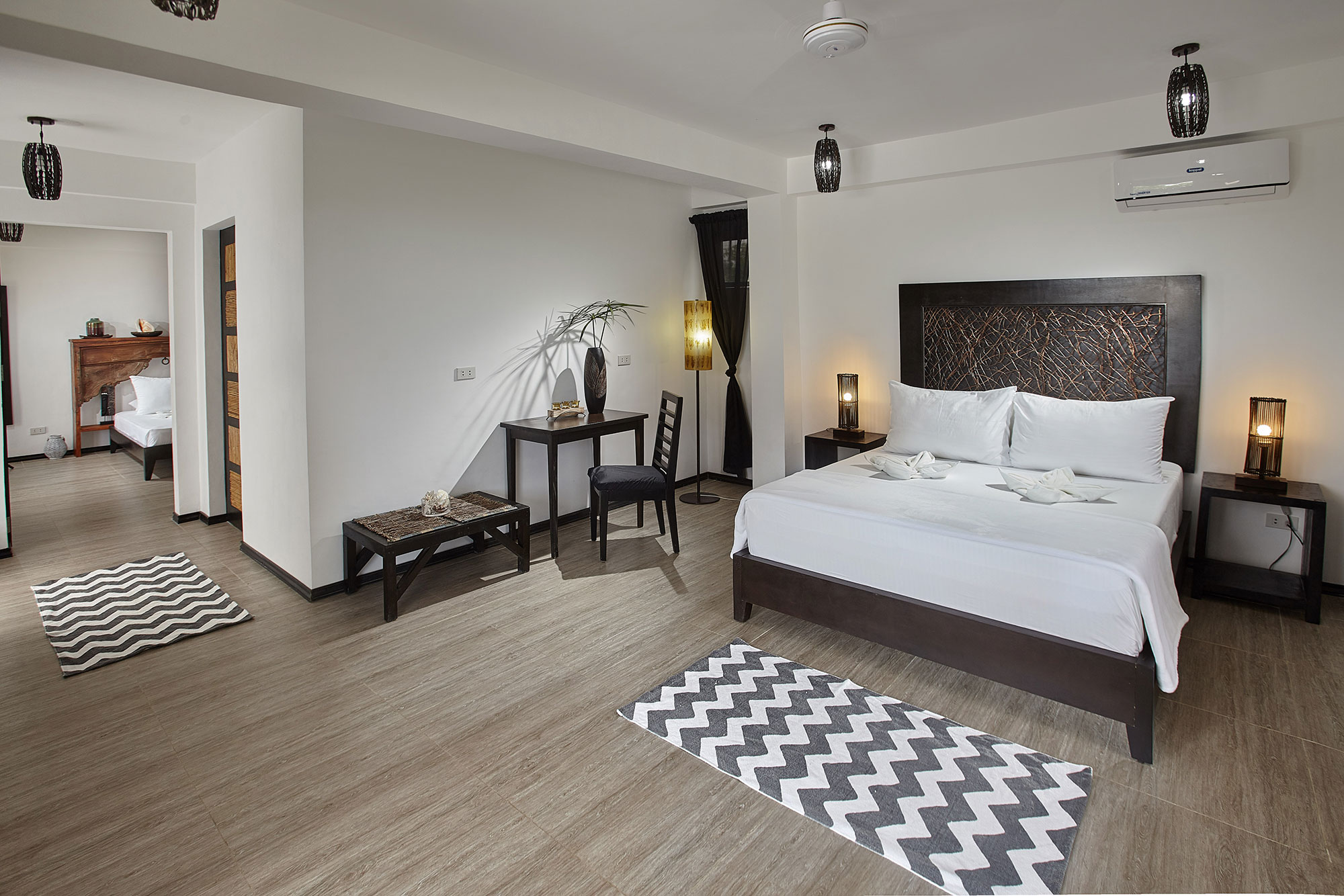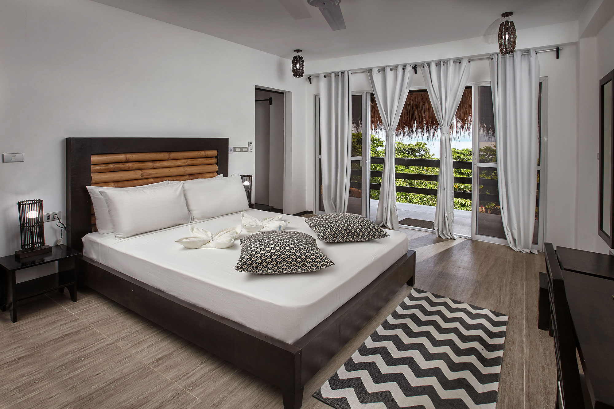 Die modern in weiß und braun eingerichteten Zimmer unterteilen sich in Standard Sea View Deluxe Zimmer und Deluxe Zimmer. Alle verfügen über ein kleines Doppelbett und ein Einzelbett, Klimaanlage, Free Wifi, Ventilator, Minibar, Safe, Haarföhn und Strand Handtücher.